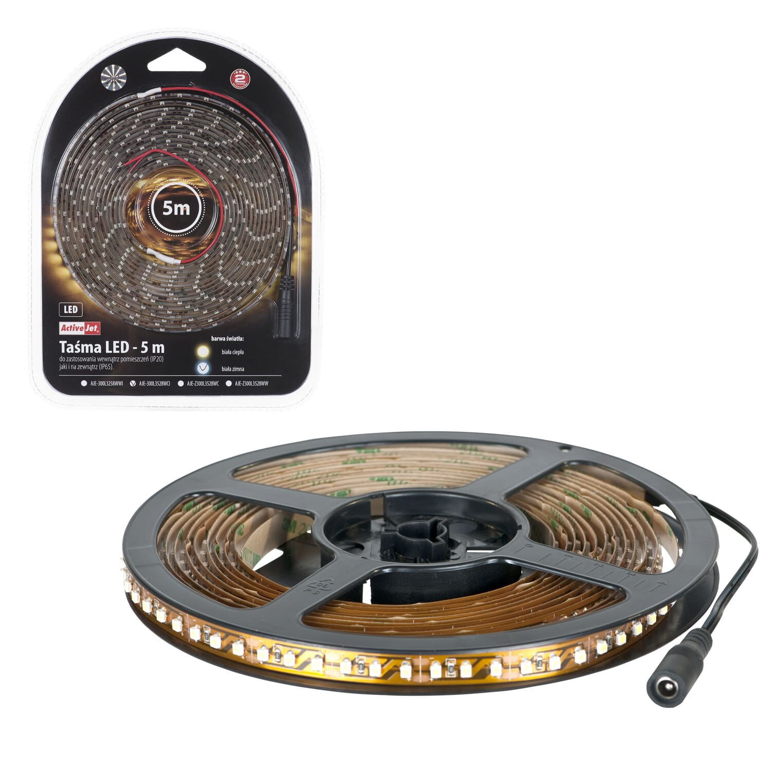 Taśma LED o długości 5 m, marki Active Jet. Jest to taśma ledowa przeznaczona do dekoracyjnego podświetlania wnętrz.