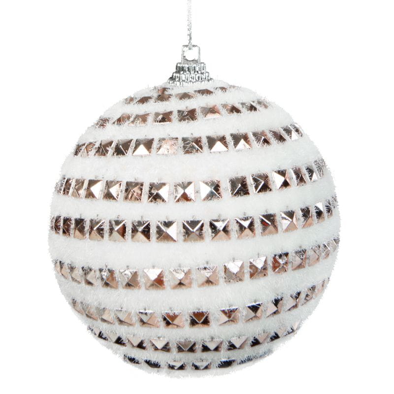 Bombka plastikowa zdobiona drobnymi cekinkami i brokatem kolor: szampański, Skład: 100%poliester, Aukcja dotyczy 4szt.