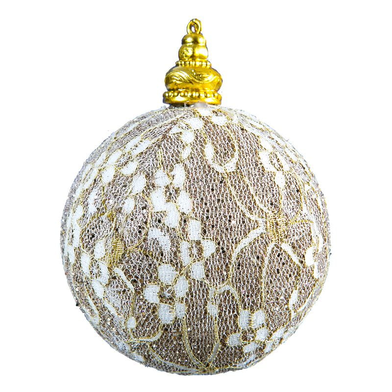 Bombka z tworzywa sztucznnego powleczona koronkowym materiałem kolor: szampański, Aukcja dotyczy 6szt.