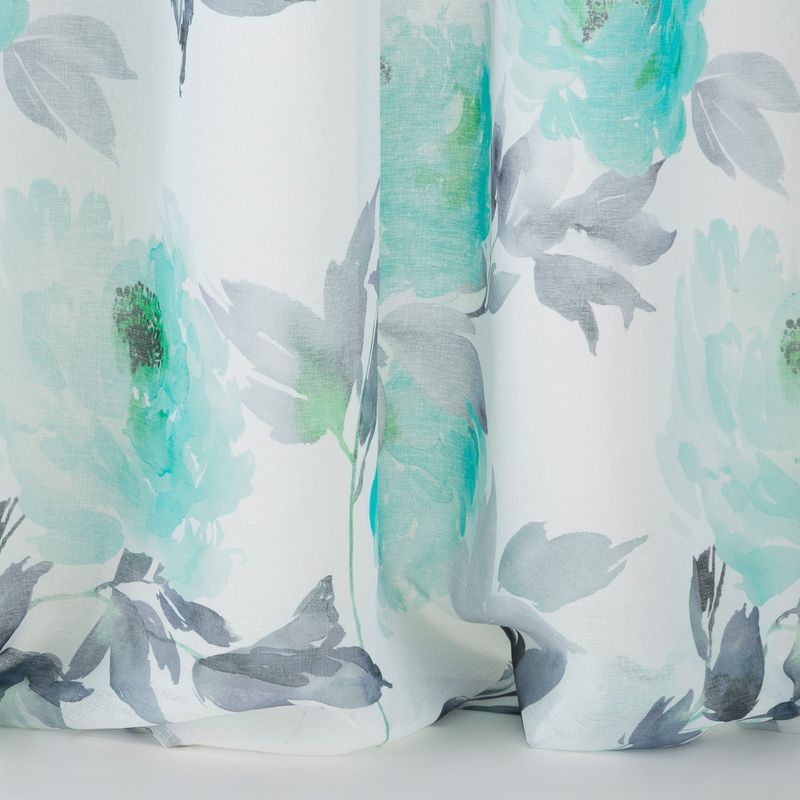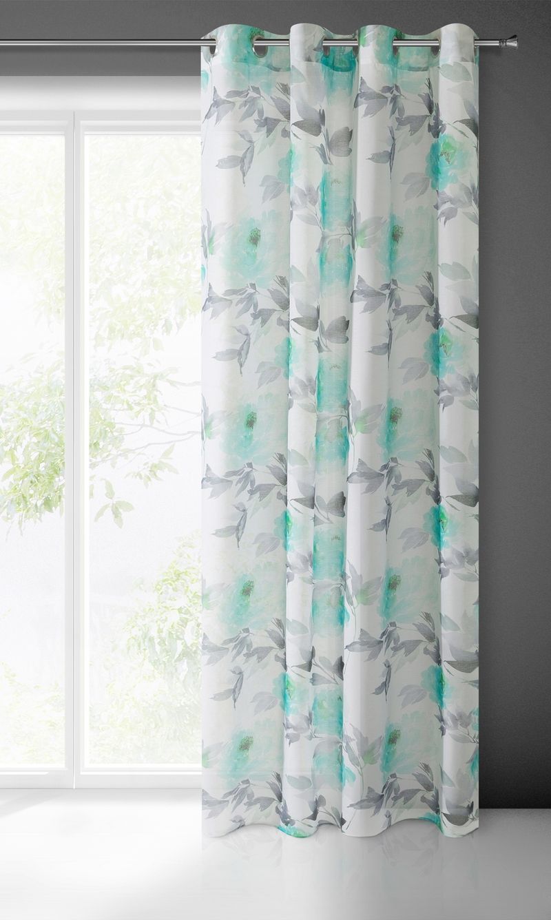 BRIANA BIAŁA ZASŁONA Z ETAMINY W TURKUSOWE KWIATY