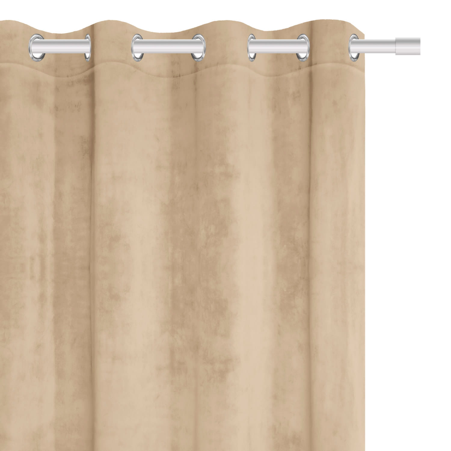 Zasłona w kolorze beżu doskonale wpasuje się do nowoczesnych wnętrz. Mocowana jest na 8 chromowanych srebrnych przelotkach o średnicy 4 cm, które są bardzo proste w zawieszeniu na karnisz.