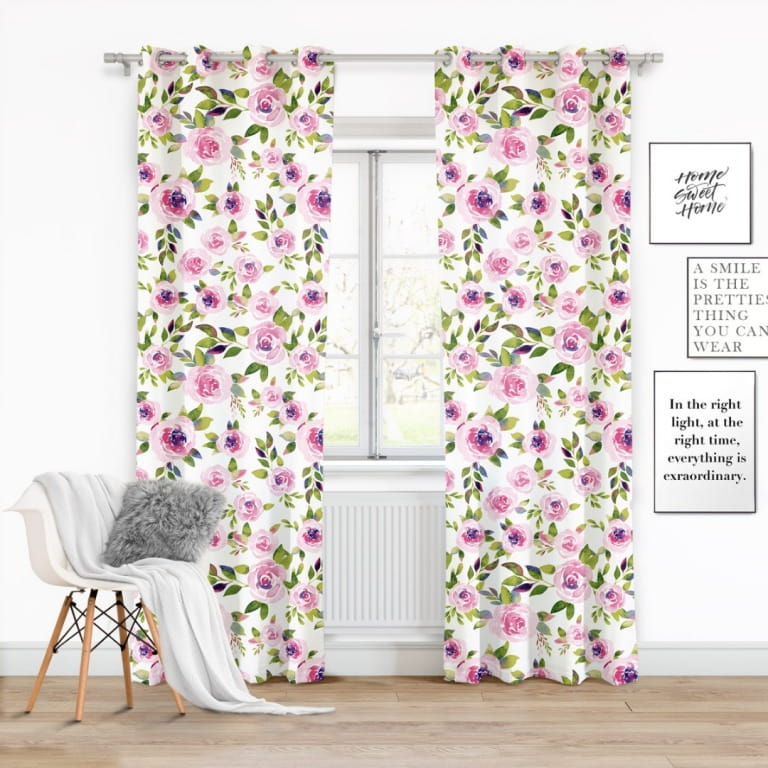 Biała Zasłona Do Salonu W Kwiaty 140x250 2