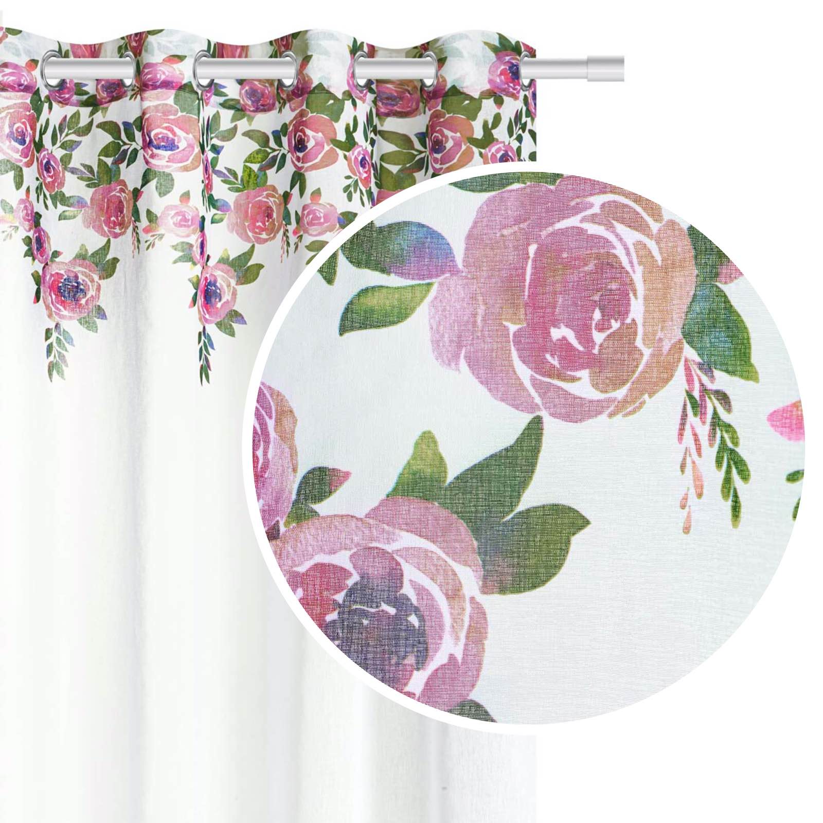 Biała Zasłona Do Salonu W Kwiaty 140x250 Dekoracyjna Róże Piwonie Kwiaty