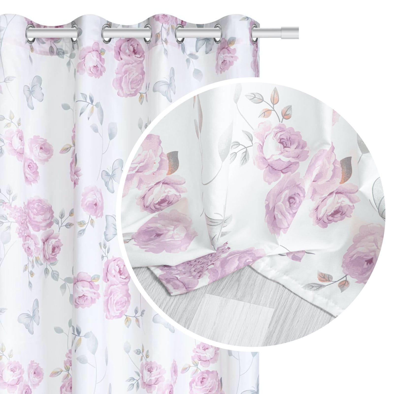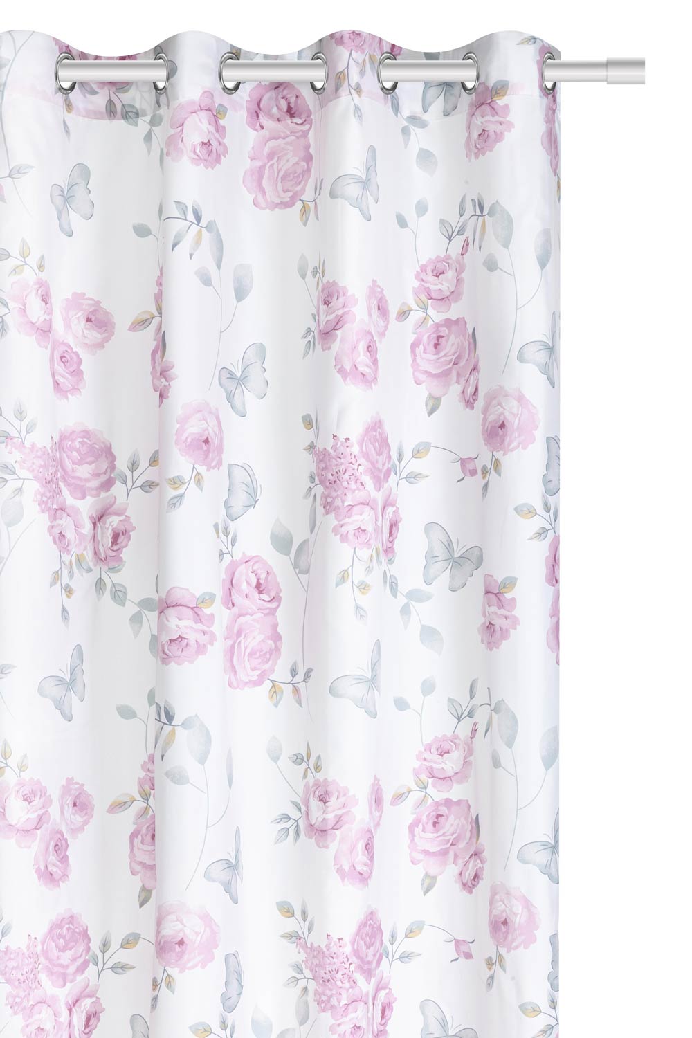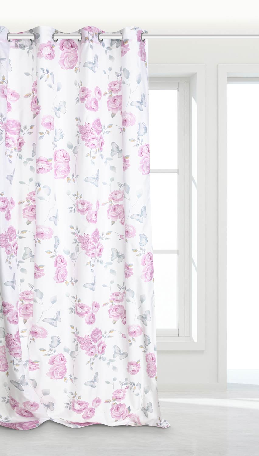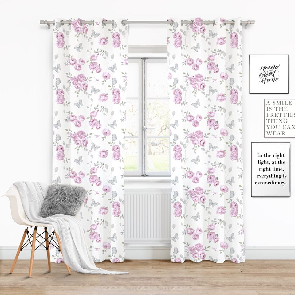 Zasłona biała doskonale wpasuje się do wnętrz w kobiecym stylu. Inspirowana jest przepięknym motywem florystycznym. Mocowana jest na 8 chromowanych przelotkach o średnicy 4 cm, które są bardzo proste w zawieszeniu na karnisz.