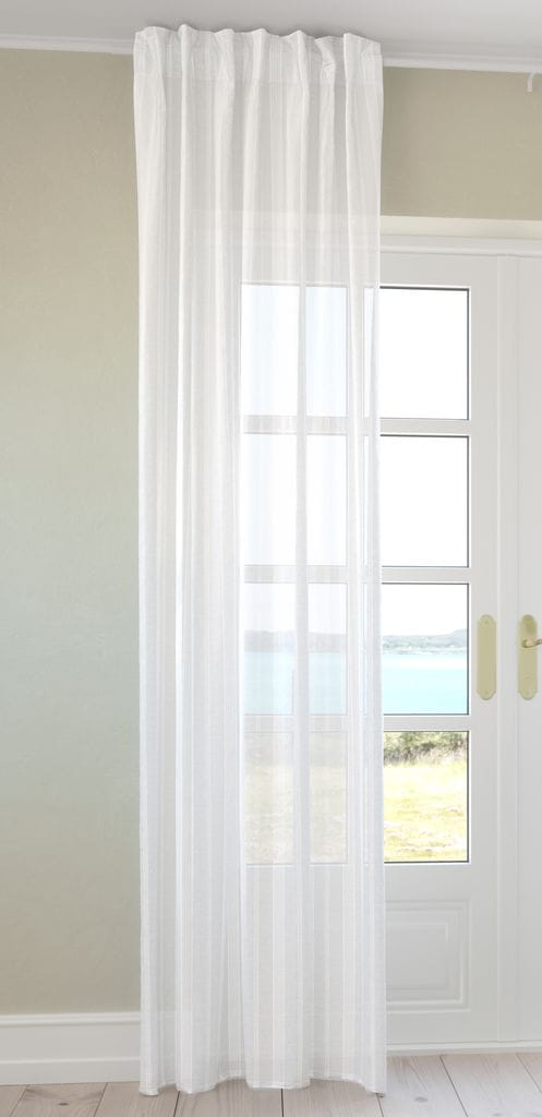 Biała zasłona gotowa w paski tunel 140 x 300 cm do pokoju salonu sypialni