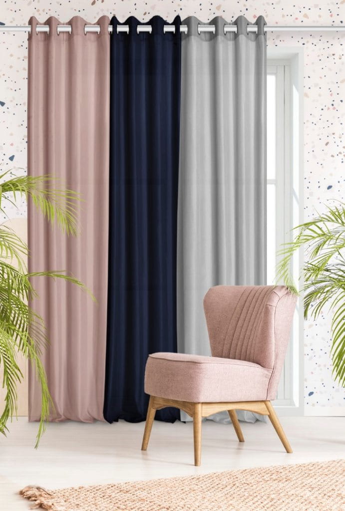 Zasłona classic blue doskonale wpasuje się do wnętrz w stylu skandynawskim czy minimalistycznym.Mocowana jest na 8 chromowanych przelotkach o średnicy 4 cm, które są bardzo proste w zawieszeniu na karnisz. Taka konstrukcja sprawia, że zasłona układa się w estetyczne fale.