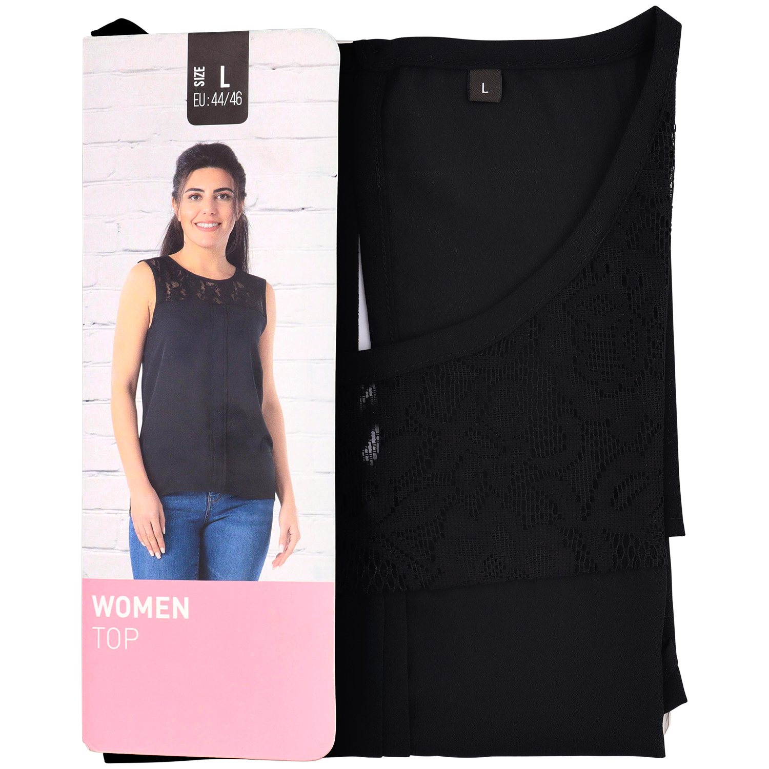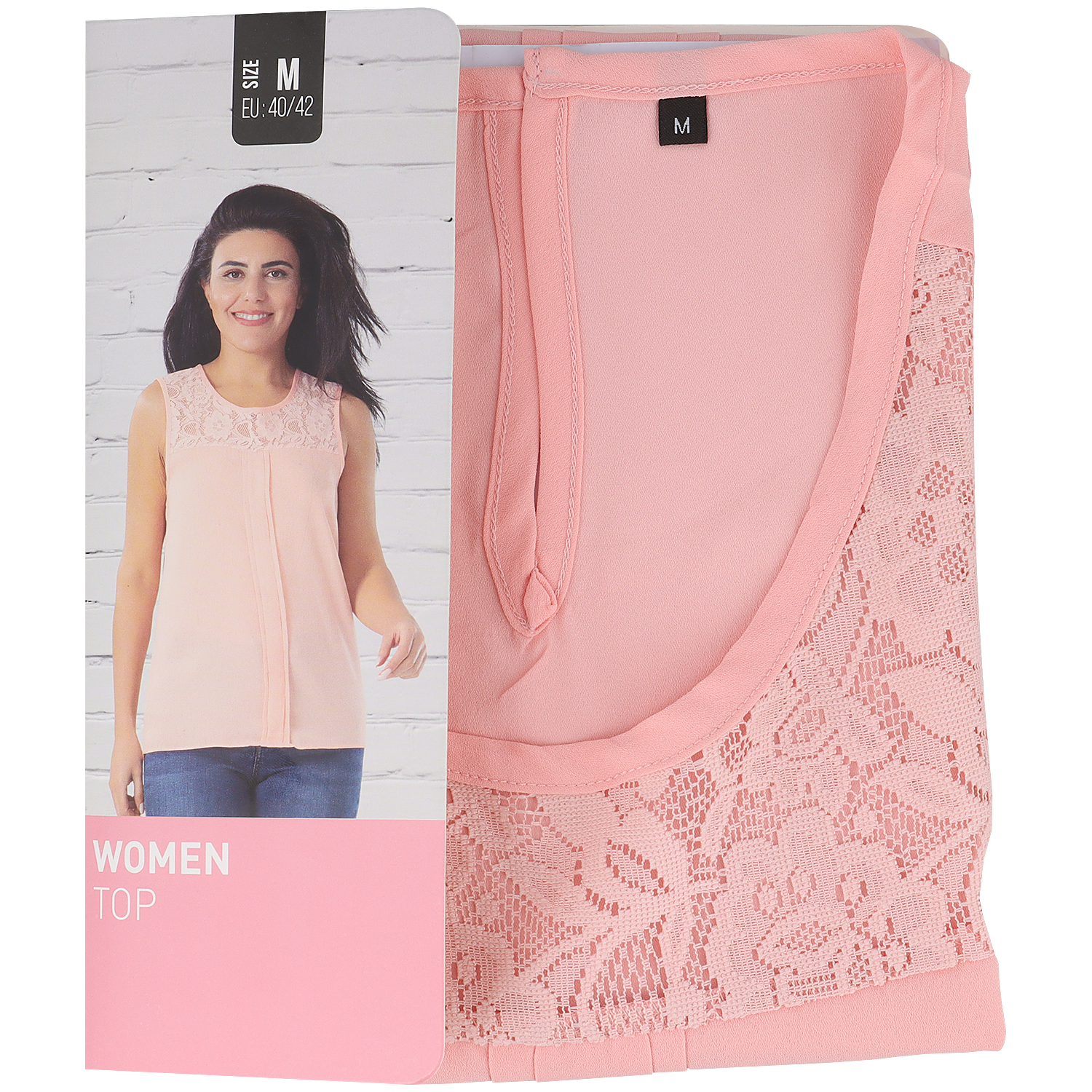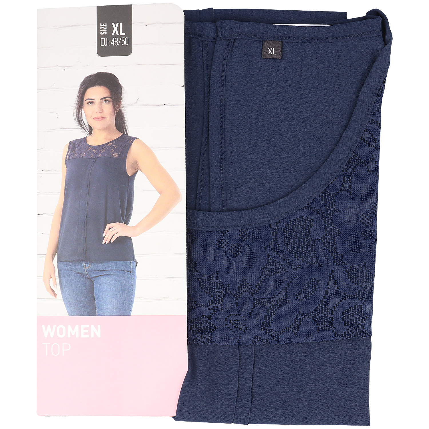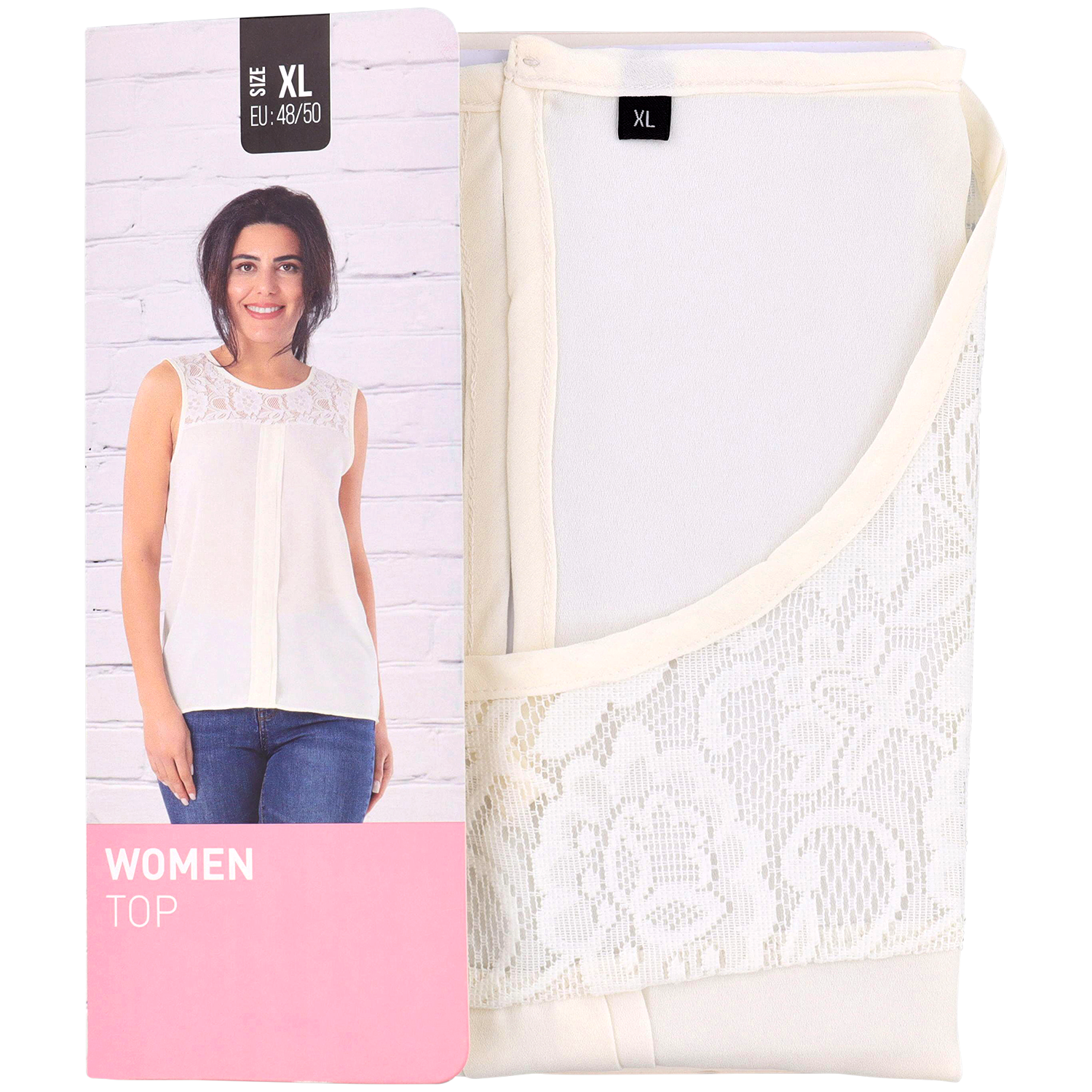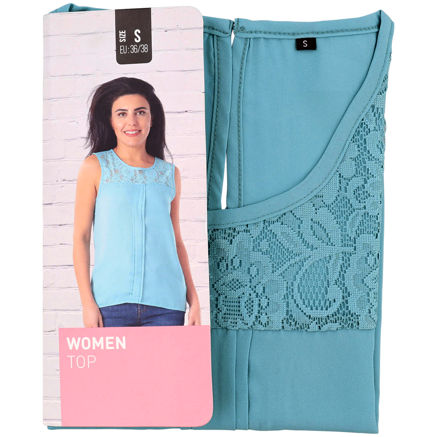 Damska bluzka bez rękawów jest pięknie wykończona koronką i wygląda ładnie na przykład ze spódnicą lub dżinsami.