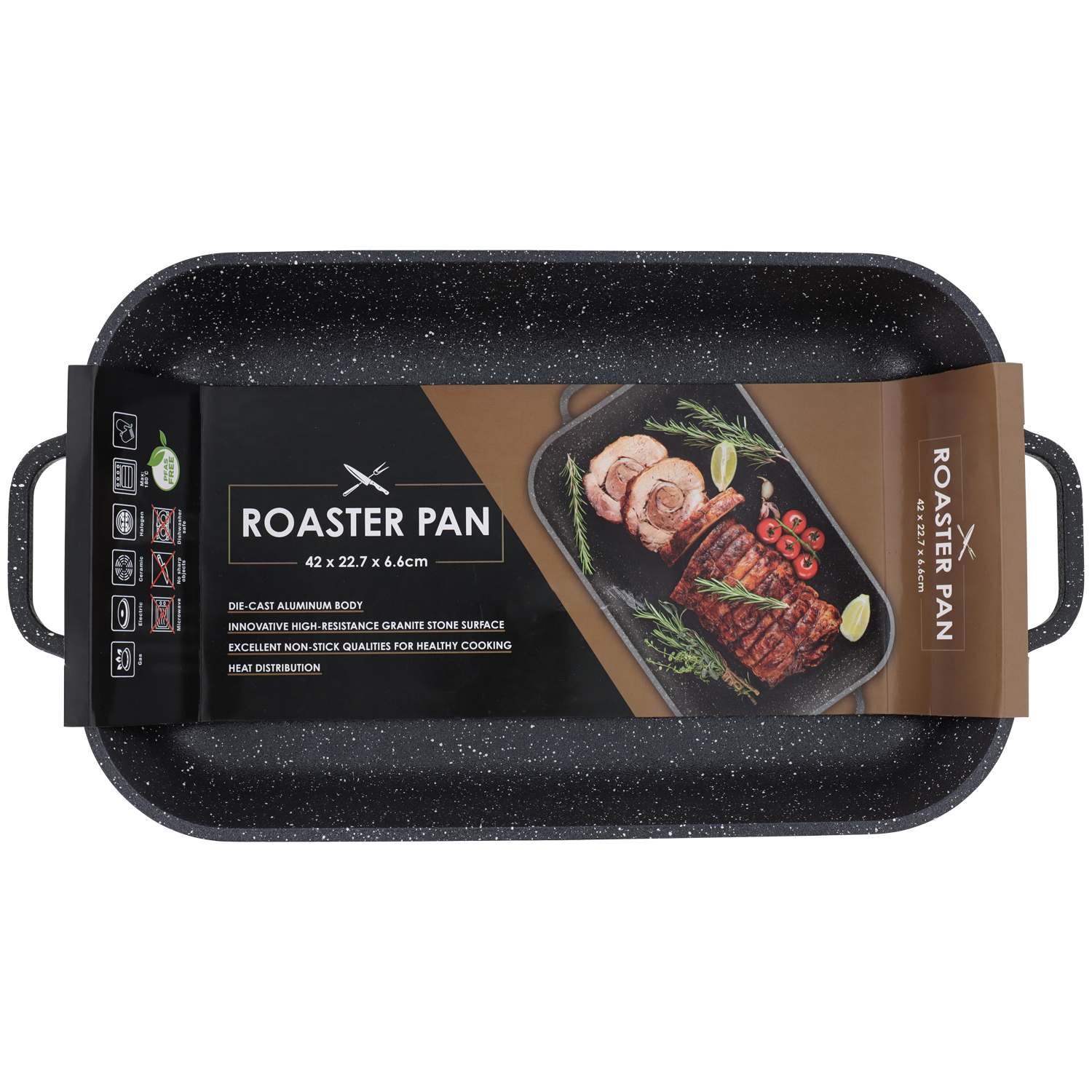 W tej brytfannie przyrządzisz najsmaczniejsze dania! Idealna do codziennych wyzwań w kuchni. Podgrzewaj w niej smakołyki do 180°C w piekarniku i na różnych płytach grzewczych. Ciepło równomiernie się w niej rozprowadza. Dzięki specjalnej powłoce nieprzywierającej Twoje danie nie będzie się przypiekać. Stwórz prawdziwą ucztę!