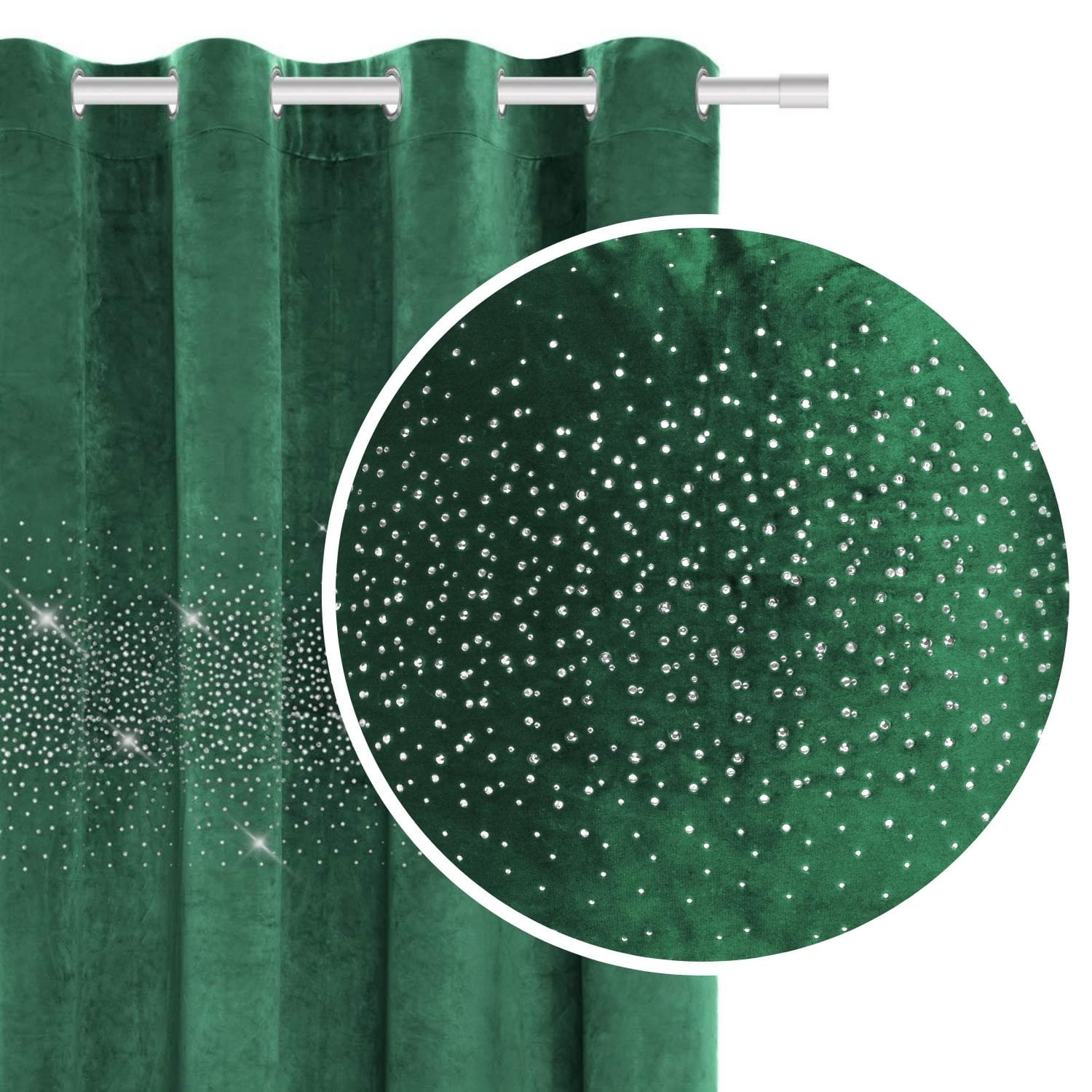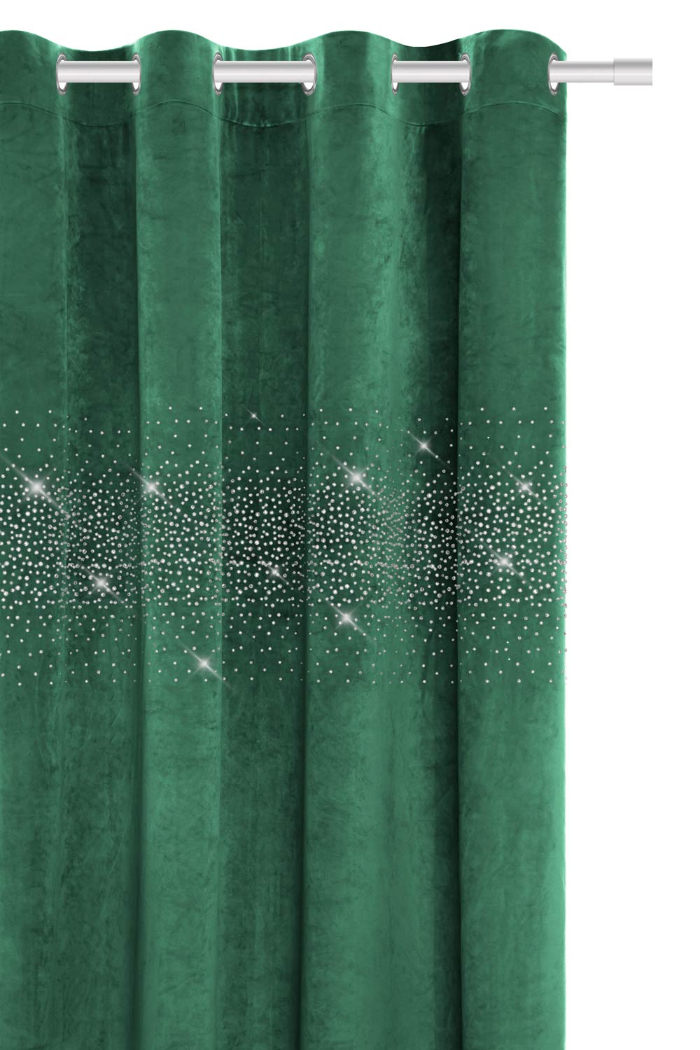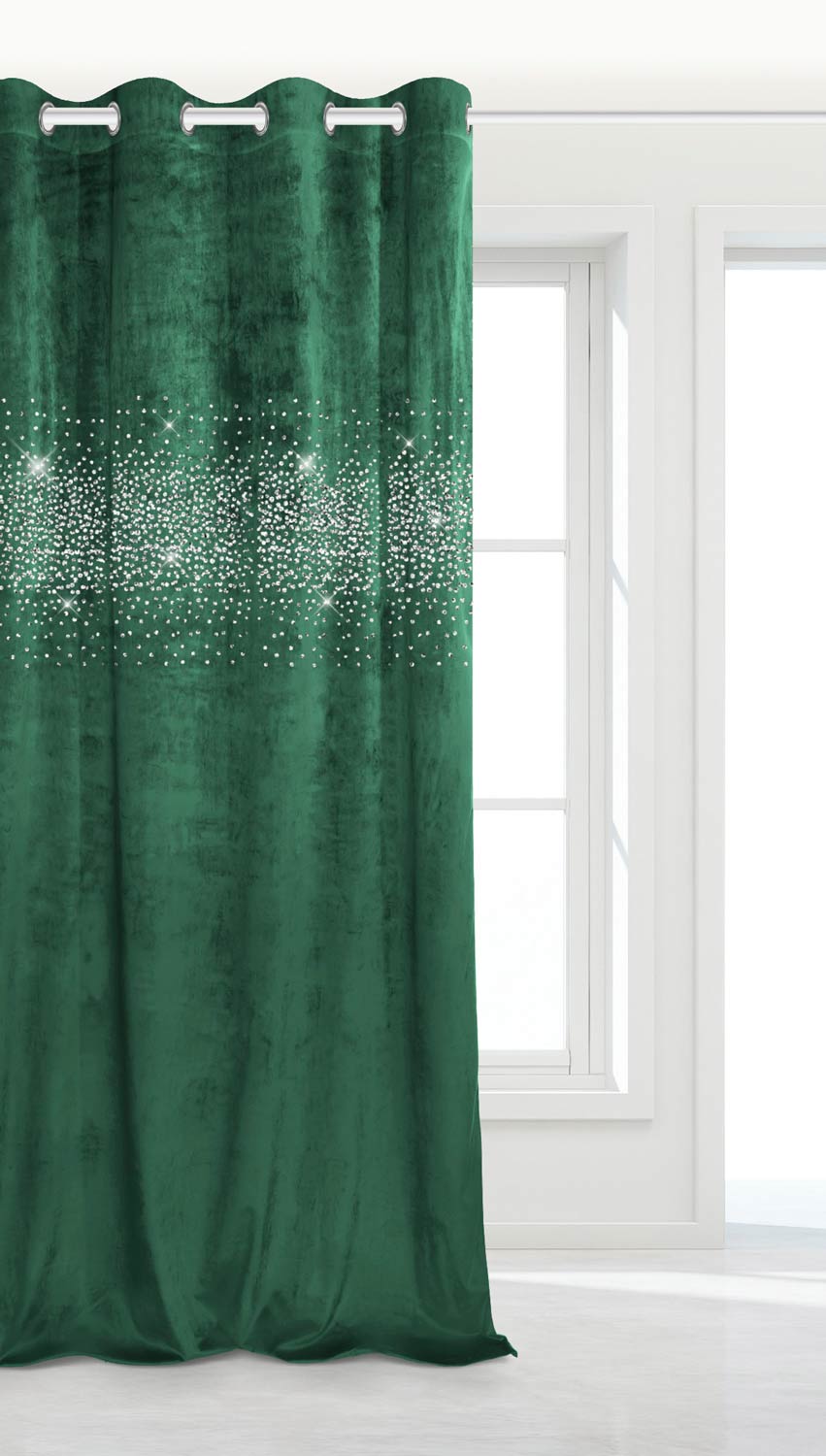 Butelkowa Zieleń Zasłona Welurowa Velvet z kryształkami 140x250 DO SYPIALNI