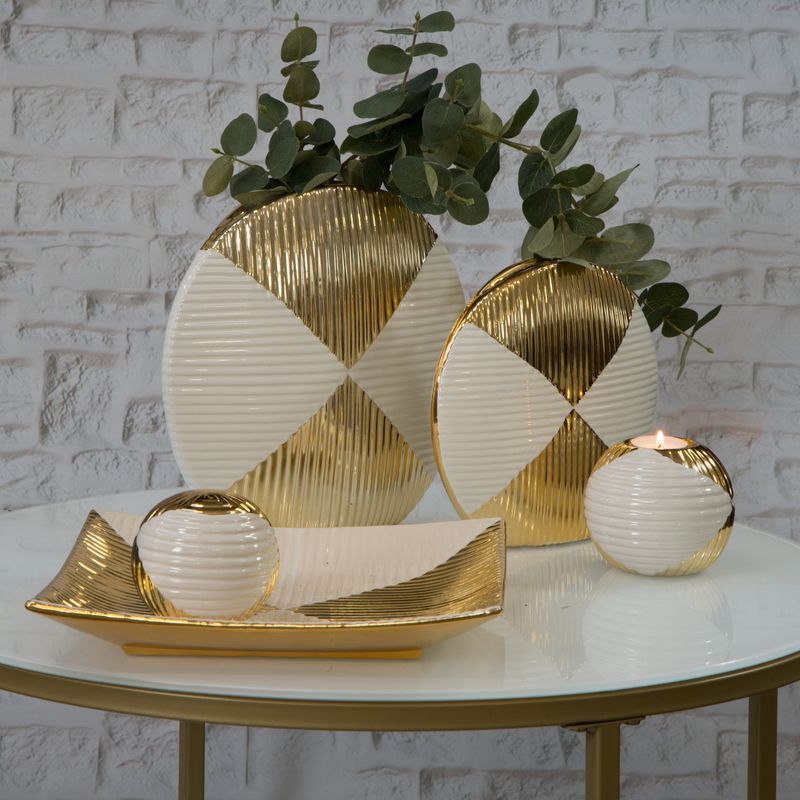 CERAMICZNA KULA OZDOBNA FIGURKA PASKI 9CM BEŻOWA 2szt