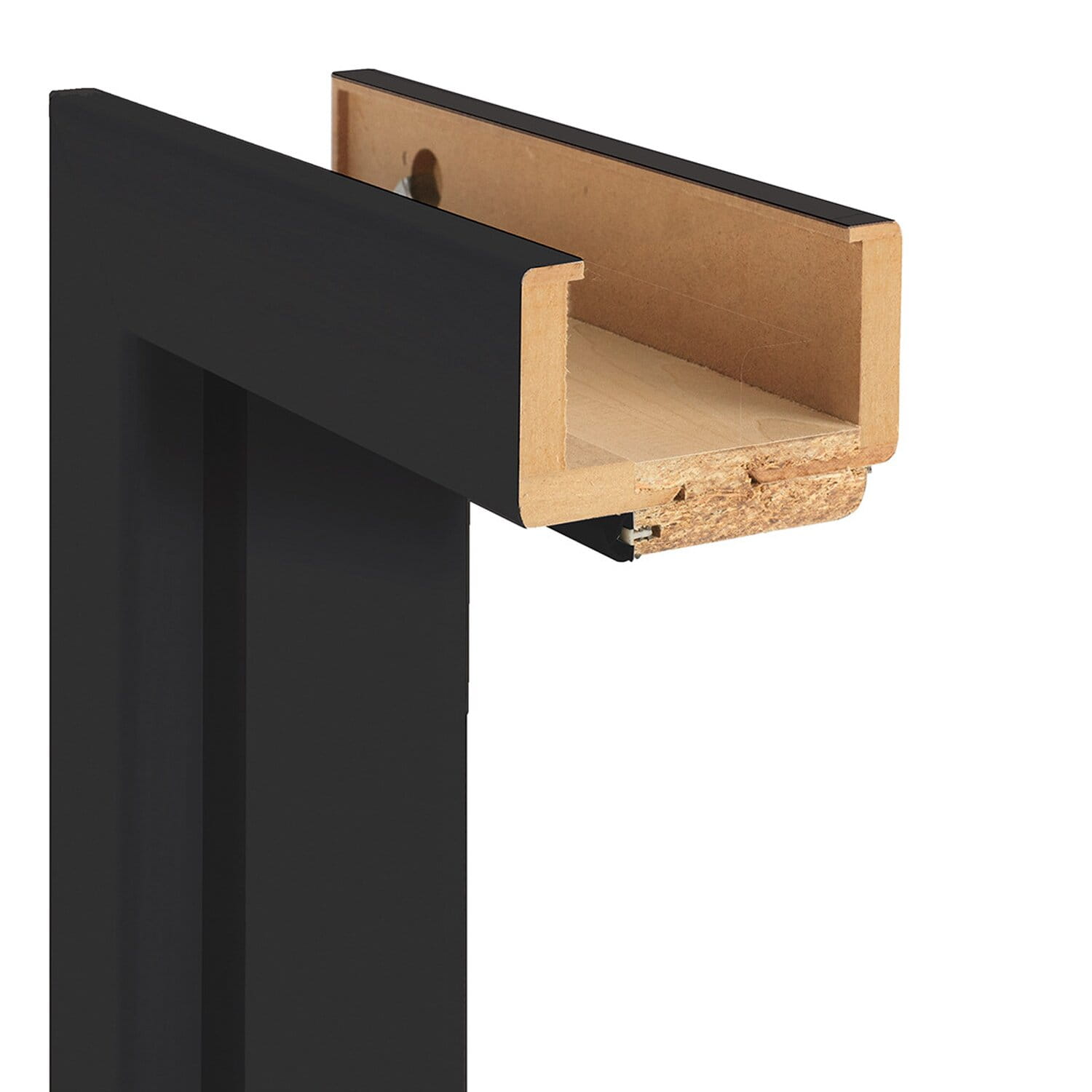 Ościeżnica wykonana została z wysokogatunkowej płyty drewnopochodnej MDF oraz płyty wiórowej, dodatkowo od strony ekspozycji pokryta jest w całości matowym lakierem.