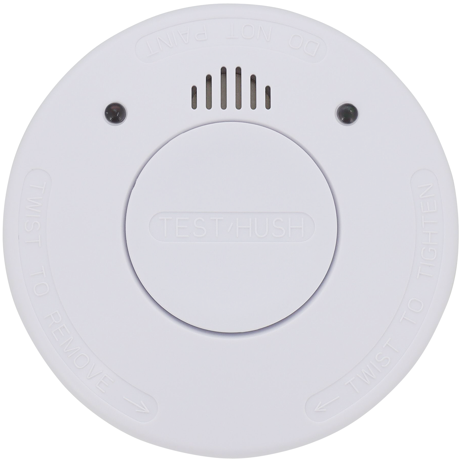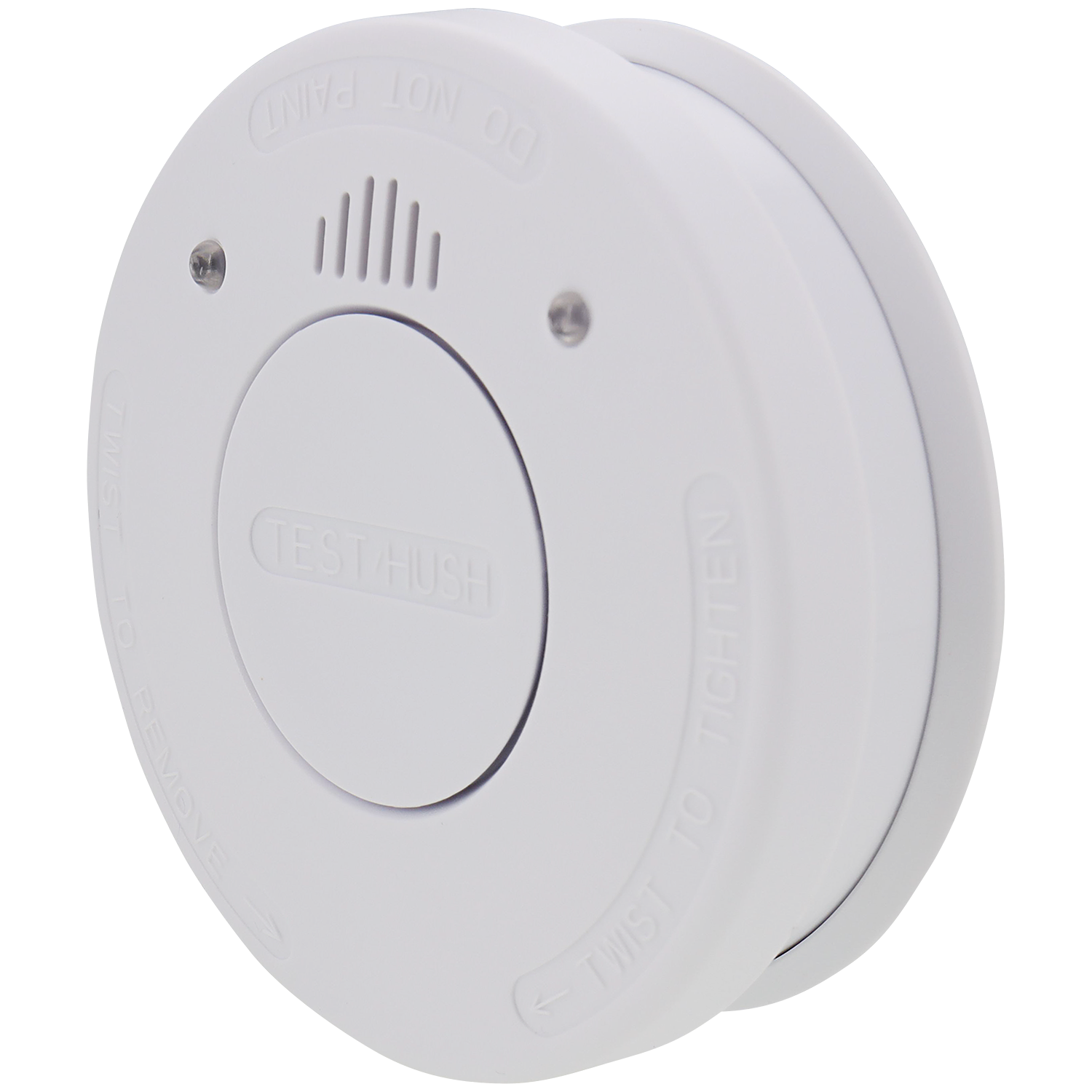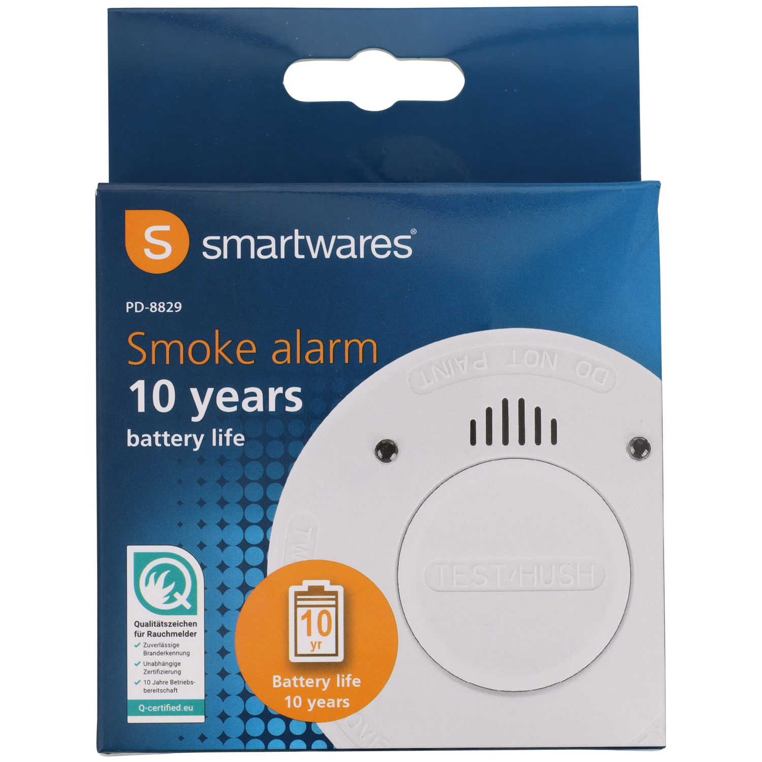 Zamontuj na każdym piętrze czujnik dymu, by dom był jeszcze bezpieczniejszy. Bateria wystarczy na 10 lat. To bardzo wygodne. Przetestuj czujnik przy pomocy dużego okrągłego przycisku na środku. Ten sam przycisk służy do wyłączania.