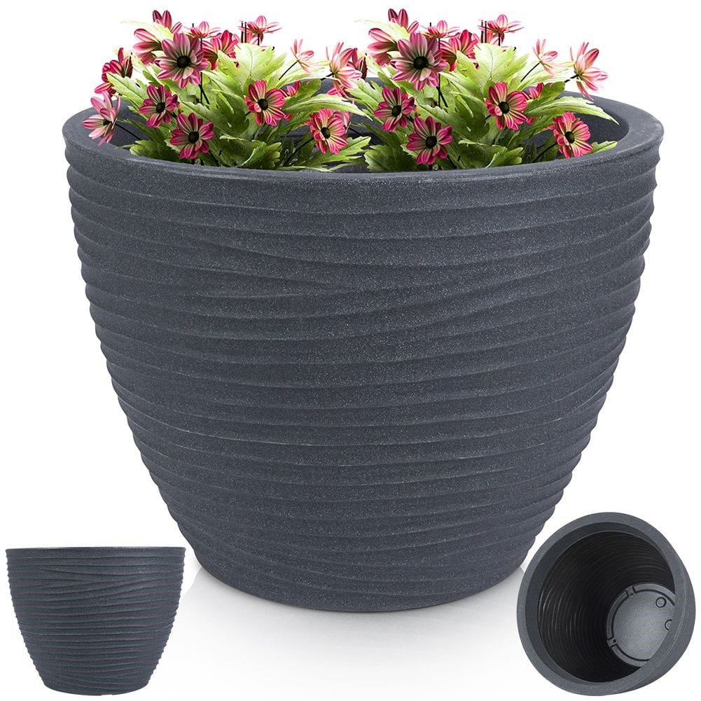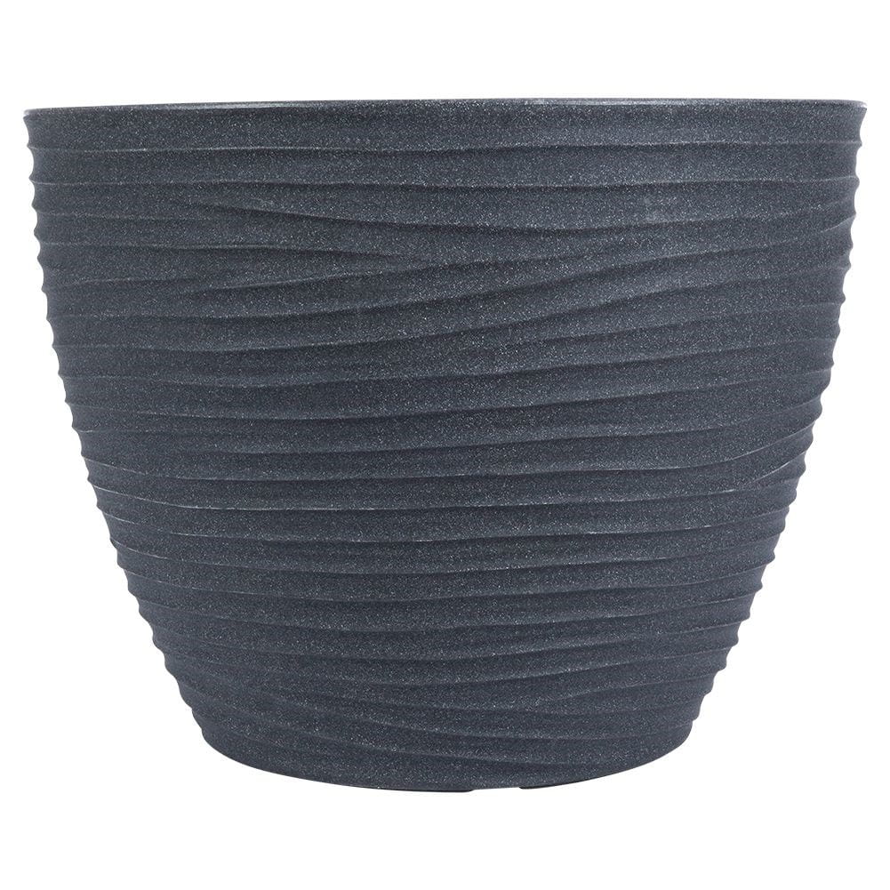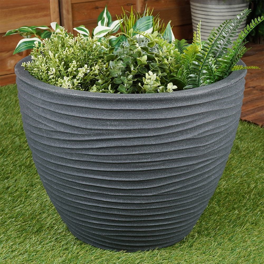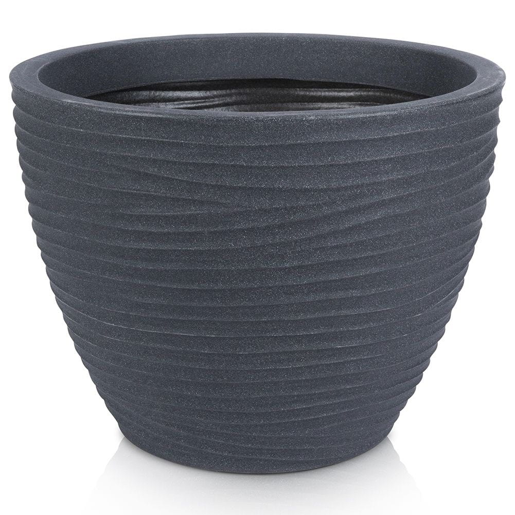 Doniczka wykonana z tworzywa imitującego kamień w kolorze grafitowym z ozdobnymi przetłoczeniami. Odporna na warunki atmosferyczne. Idealna do ogrodu, na taras czy podjazd przed domem.✅Dane techniczne: