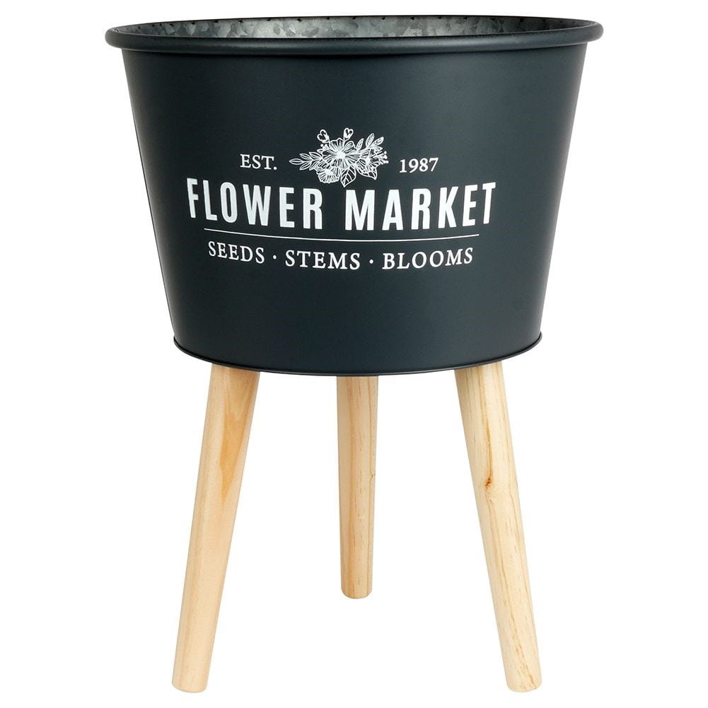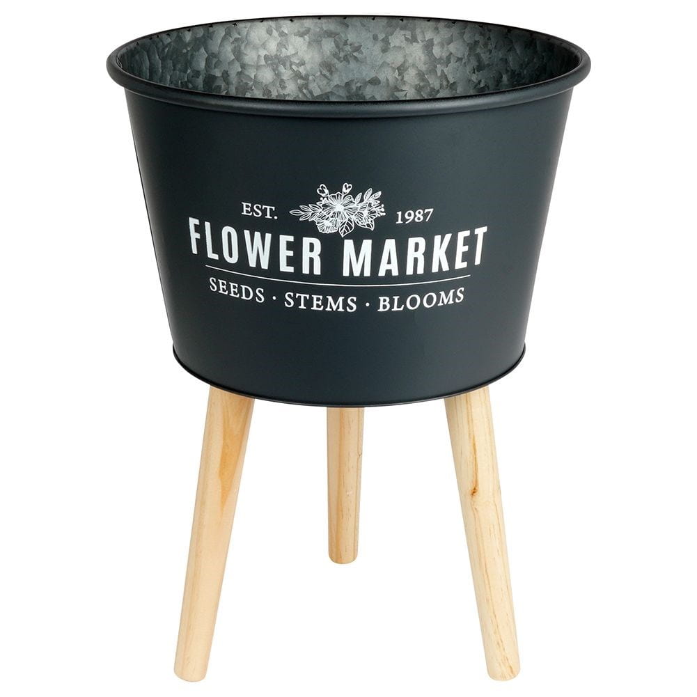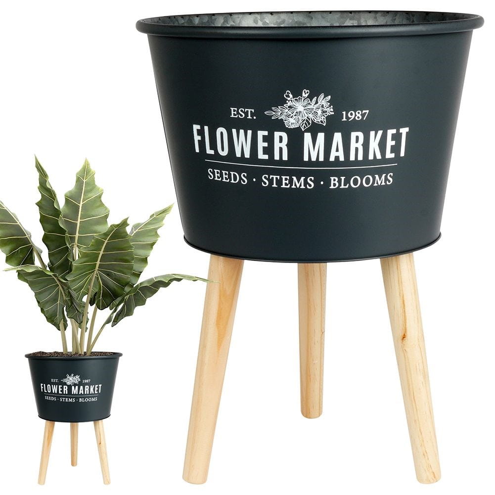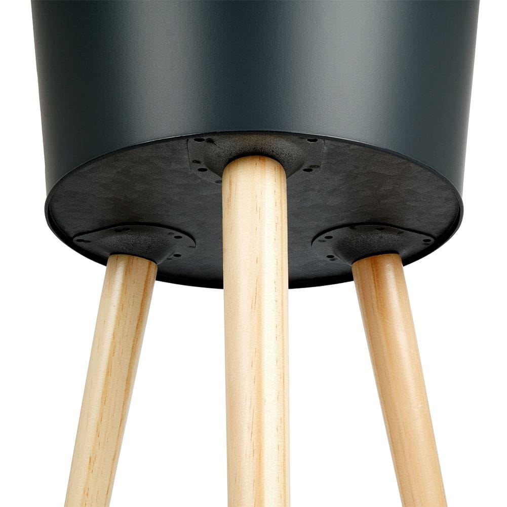 Doniczka osłonka metalowa na drewnianych nóżkach grafitowa / kwietnik