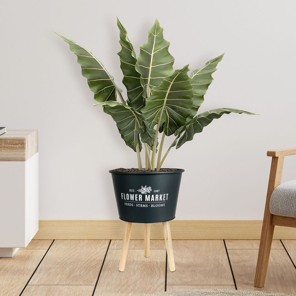 Oryginalna doniczka na trzech nóżkach. Stylowa i elegancka. Wykonana z cynku w kolorze grafitowym z napisem. Dzięki niej w piękny sposób wyeksponujesz rośliny żywe oraz sztuczne.✅Dane techniczne:
