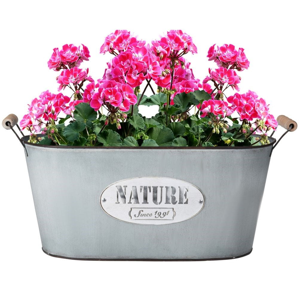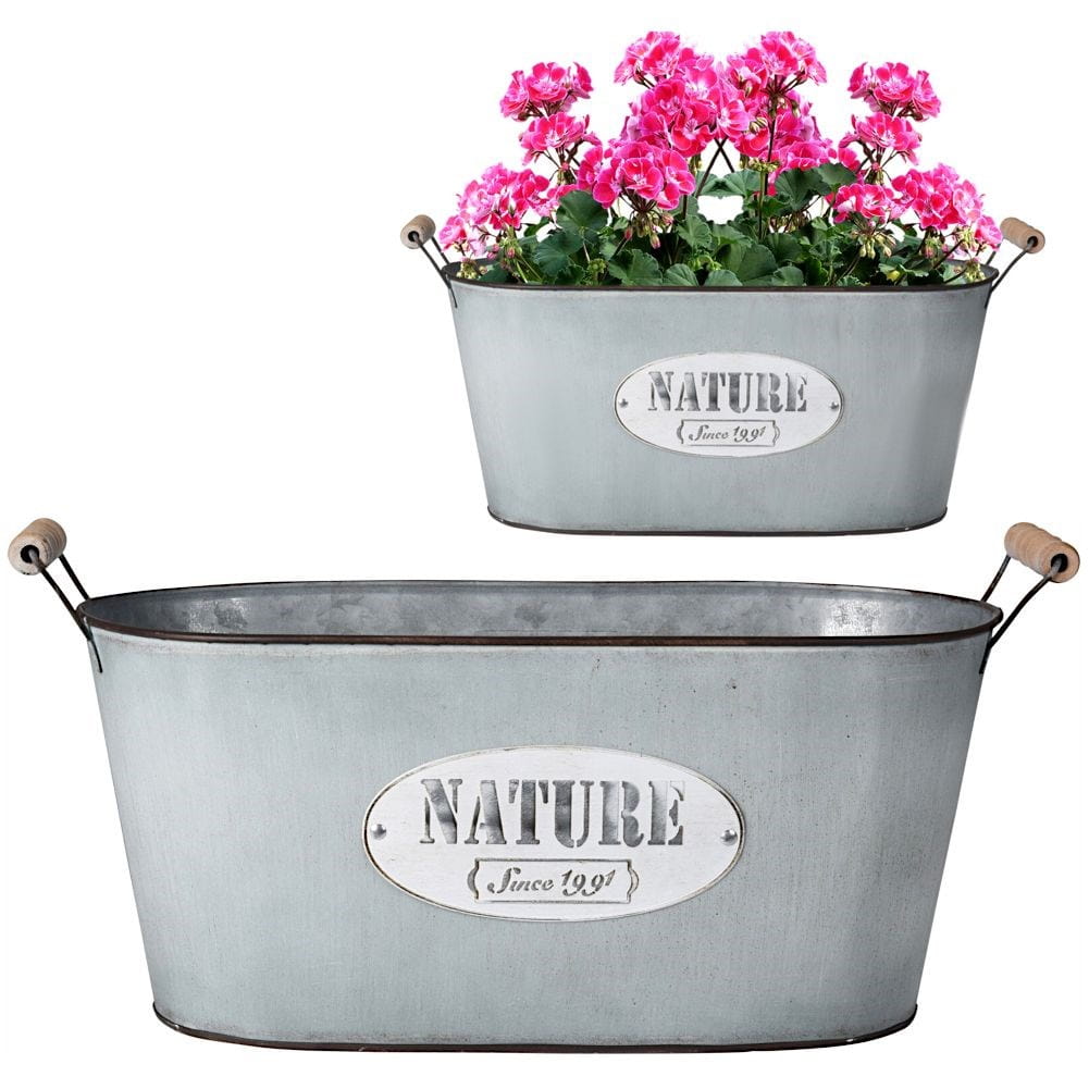 Oryginalna metalowa osłonka na doniczki w stylu retro. Posiada dwa uchwyty wykonane z drewna. Nadaje się do użytku wewnątrz oraz na zewnątrz pomieszczeń.✅Dane techniczne: