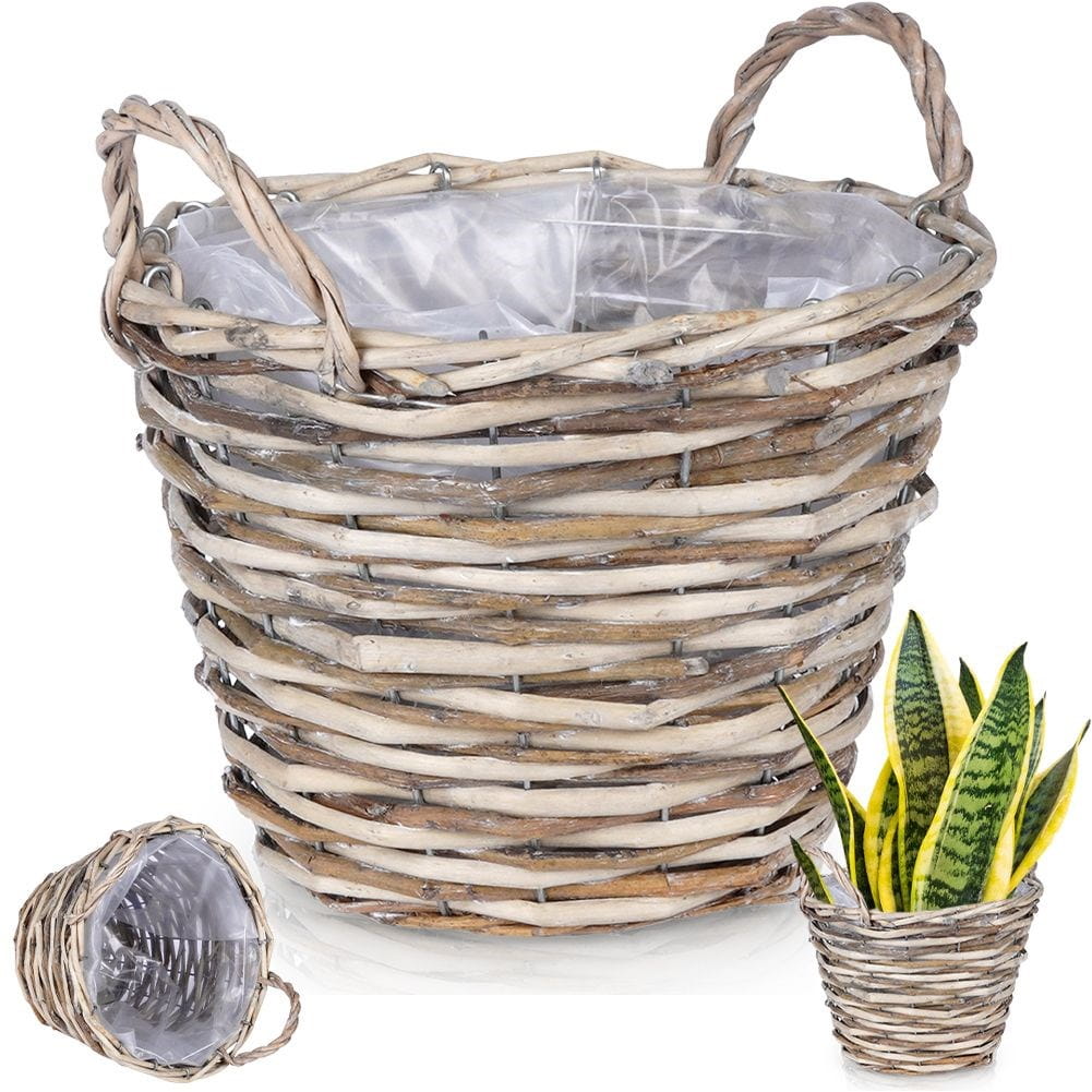 Oryginalna osłonka na rośliny, kwiaty, zioła. Wykonana z wikliny, ręcznie metodą rzemieślniczą Wewnątrz wyłożona folią zapobiegającą wylewaniu nadmiaru wody.✅Dane techniczne:
