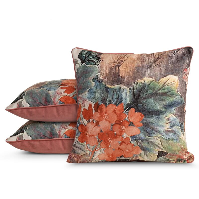 Dwustronna Poszewka na poduszkę welwet w kwiaty 60x60