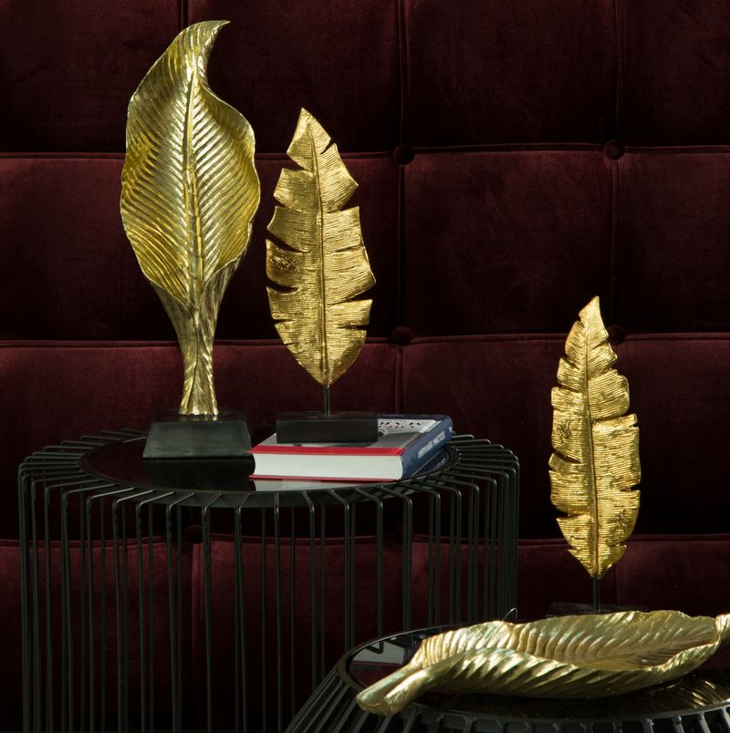 FIGURKA DEKORACYJNA OZDOBA ZŁOTY LIŚĆ 19X8X26 CM