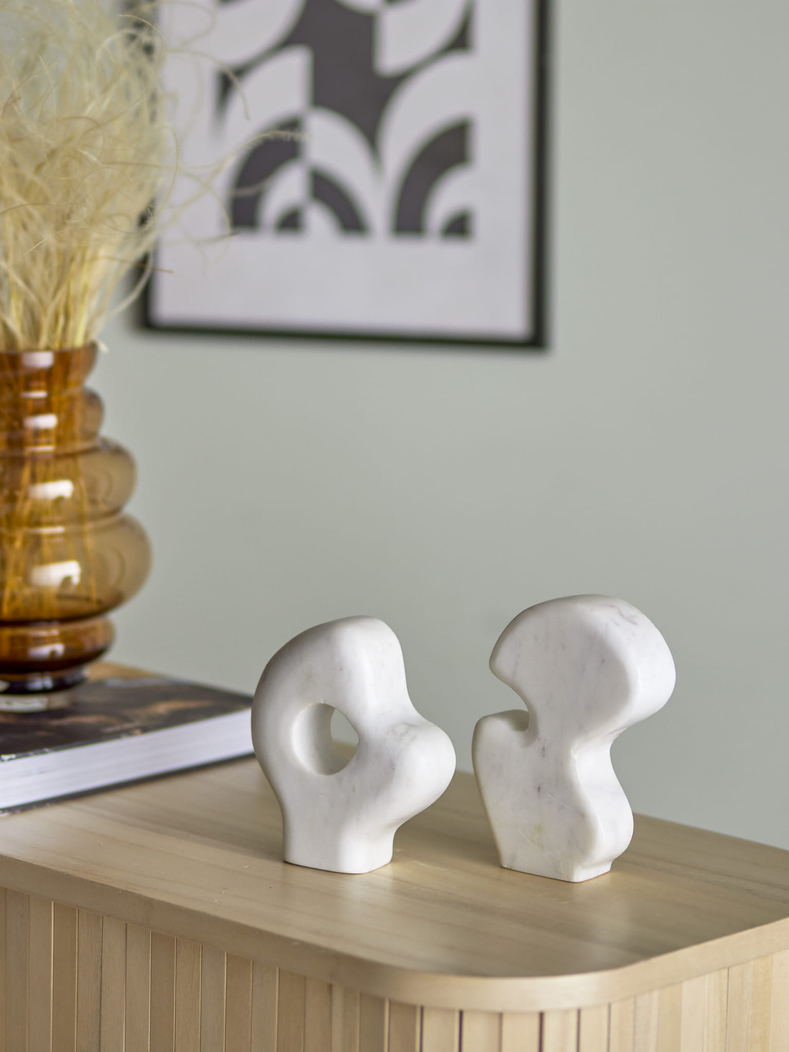 Dekoracja Laki Deco marki Bloomingville jest wykonana z gładkiego białego marmuru. Dekoracja jest dostarczana w zestawie dwóch sztuk i ma organiczny wygląd, który można wykorzystać razem lub osobno. Piękno naturalnego kamienia polega na tym, że nie ma dwóch identycznych egzemplarzy. Każdy z nich jest unikalnym dziełem sztuki wykutym przez matkę naturę na przestrzeni tysiącleci przy użyciu ciepła, ciśnienia i wielu różnych minerałów i materiałów organicznych. Sposób, w jaki te minerały osadzają się w kamieniu, powoduje ogromną różnorodność kolorów, wzorów, tekstur i żyłek w każdej płycie.