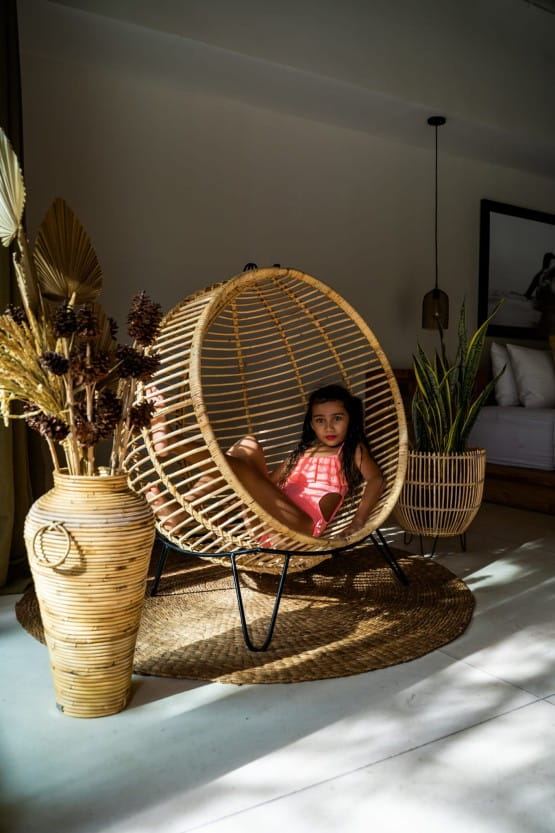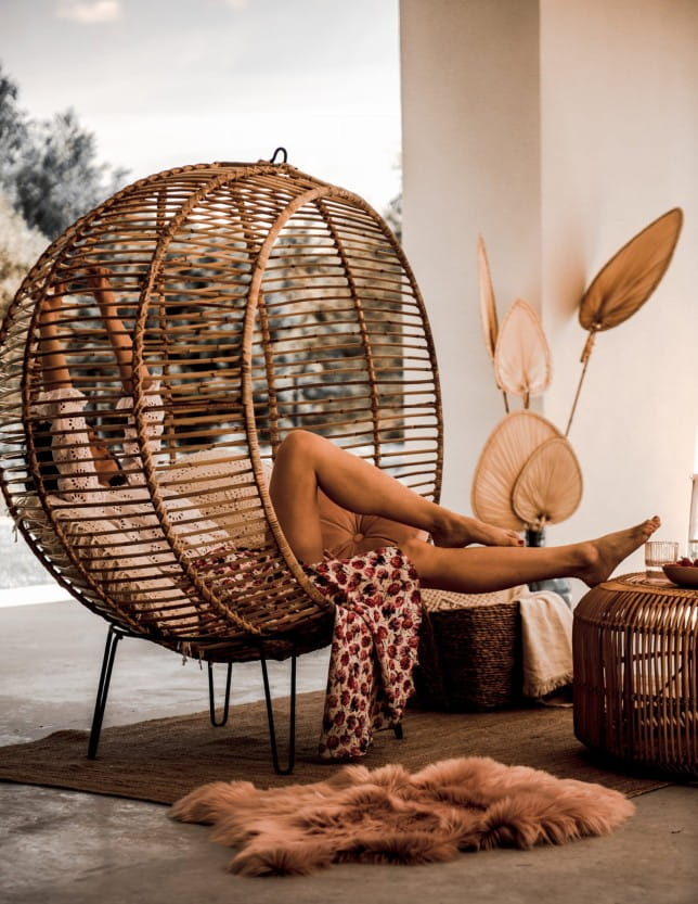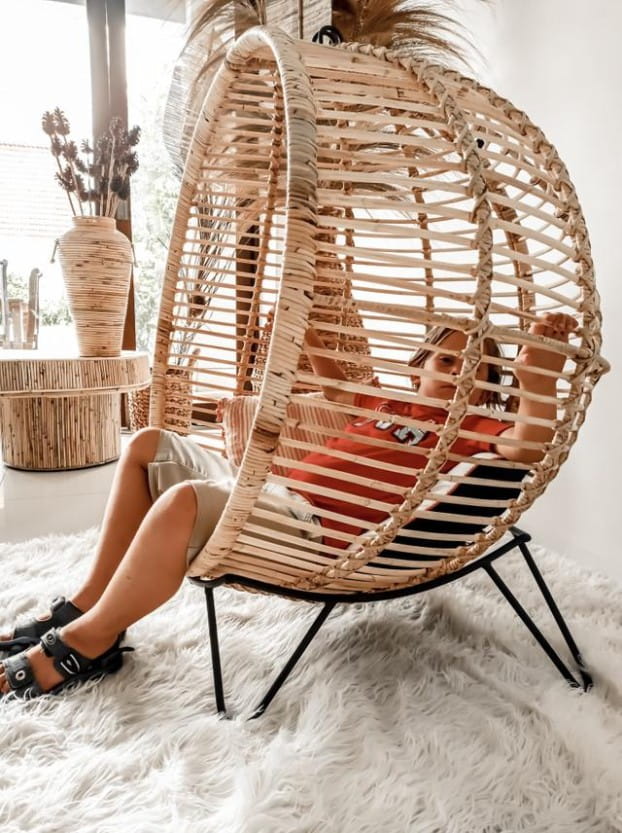 Wiszący Fotel BALL to designerski projekt, wykonany z 100% naturalnego rattanu. Fotel rattanowy wiszący i stojący jest wielofunkcyjny może pełnić rolę wolno stojącego fotela na stojaku lub jako bujany fotel wiszący. Do zestawu dołączony jest metalowy stojak oraz metalowy łańcuch. Jest to oryginalny dodatek, który zawsze przyciągnie wzrok do nowoczesnych, klasycznych oraz boho wnętrz. W fotelu Ball można zapomnieć się na długie chwile. Może on pełnić rolę zarówno fotela stojącego, jak i wiszącego, bujanego. Jego designerski kształt przykuwa uwagę. Fotel jest wykonany w 100% z naturalnego rattanu. Niezwykle komfortowy, zachwyca wielofunkcyjnością i oryginalnością. Dzięki niemu, pozornie zwyczajne czynności, takie jak czytanie książki czy słuchanie muzyki, staną się niezwykłą przyjemnością.✅Dane techniczne:
