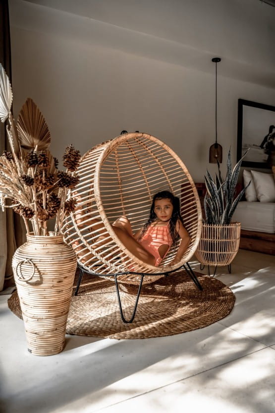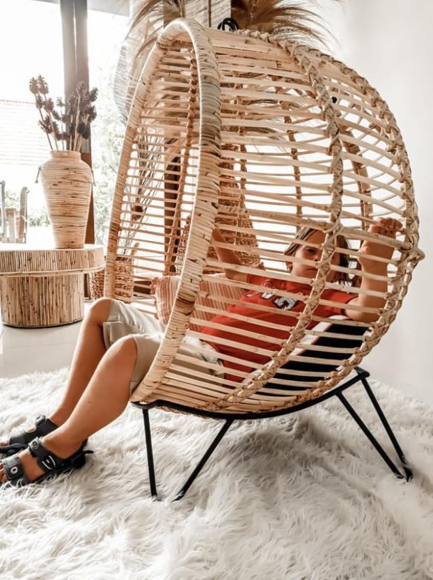 Czy chciałbyś stworzyć wyjątkowy i pomysłowy pokój dla swojego dziecka? Czy zależy Ci na stworzeniu w nim unikatowej atmosfery? Mamy dla ciebie oryginalny i nietuzinkowy Fotel Rattanowy Ball. Wiszący Fotel BALL dla dziecka to designerski projekt, wykonany z 100% naturalnego rattanu. Fotel jest wielofunkcyjny może pełnić rolę wolno stojącego fotela na stojaku lub jako bujany fotel wiszący. Do zestawu dołączony jest metalowy stojak oraz metalowy łańcuch. Jest to oryginalny dodatek, który zawsze przyciągnie wzrok do nowoczesnych, klasycznych oraz boho wnętrz. Posiadanie wyjątkowego fotela BALL umożliwia czerpanie niezwykłej przyjemności z pozornie zwyczajnych czynności takich jak czytanie książki czy słuchanie muzyki. Jako wiszący lub stojący fotel pozwoli na oddanie się chwili zapomnienia w wolny wieczór czy leniwy weekend przez delikatne kołysanie.