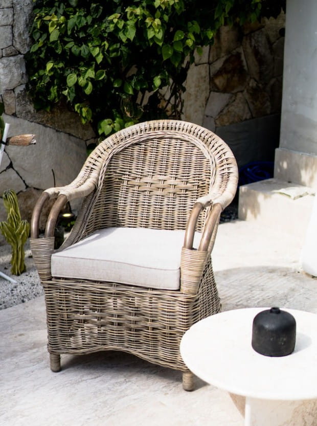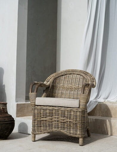 Fotel TYO został ręcznie wykonany z naturalnego rattanu przez Indonezyjskich rzemieślników z precyzją oraz dokładnością, dzięki czemu jest on unikatowy i wyjątkowy. Fotel ma unikalny kształt co daje wyjątkową wygodę i niepowtarzalny wygląd. Dwa podłokietniki wykonane są z dwóch grubszych rattanów, pięknie wygiętych co nadaje przepiękny wygląd. Podgłówek leżaka dodatkowo opleciony jest rattanem. Dodatkowo opalizujący odcień rattanu nawiązuje do kolorów jesieni i runa leśnego nadaje każdemu egzemplarzowi niepowtarzalności i unikalności. Kolekcja TYO to idealne rozwiązane dla osób ceniących sobie naturalny wygląd, solidne wykonanie oraz nietuzinkowe rozwiązania. Ciepły design wprowadzi wyjątkową atmosferę i nietuzinkowego charakteru w każdą przestrzeń. Kubiczny kształt i harmonizujący odcień fotela, nawiązujący do natury sprawdzi się we wnętrzach z różną stylistyką, takich jak boho, klasyczny, nowoczesny czy kontynentalny. Wszystkie propozycje z kolekcji TYO zamienią Twój salon, taras i patio w przytulny i gościnny kącik. W naszej ofercie dostępny są również fotele oraz sofa z tej samej linii. W zestawie znajduje się poduszka na siedzenie.