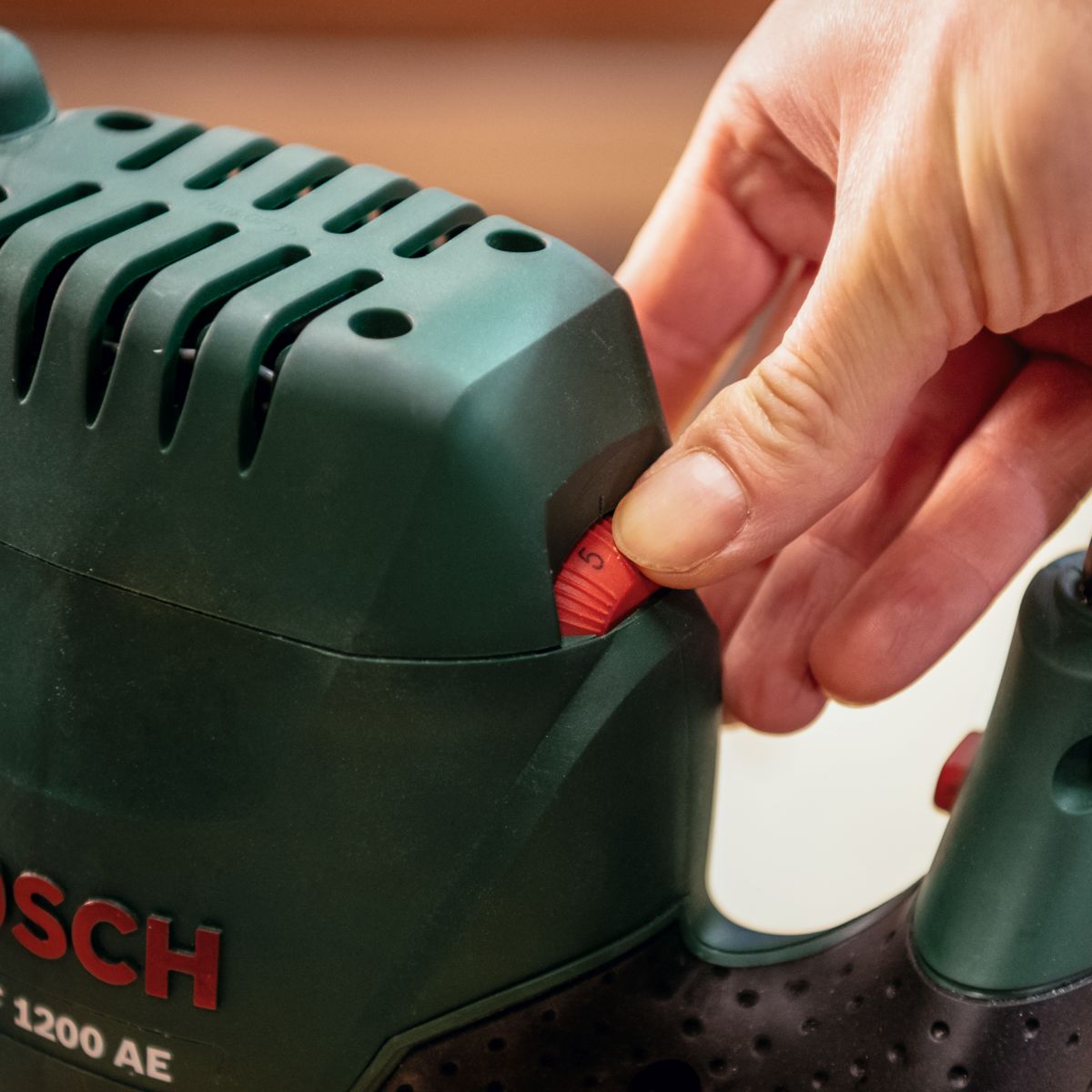 Wstępny wybór prędkości obrotowej dzięki zastosowaniu systemu Bosch Electronic z pokrętłem nastawczym i włącznikiem umożliwiającym regulację tempa pracy.
