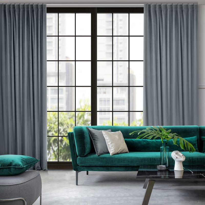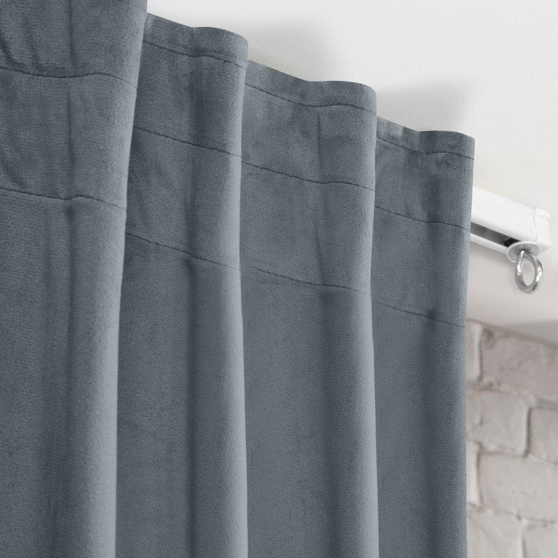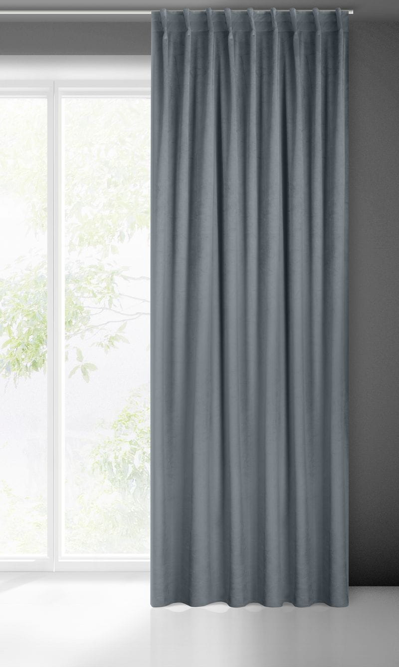 - Zasłona welwetowa, jednokolorowa z taśmą również do szyn sufitowych