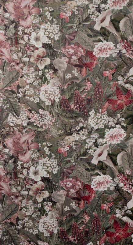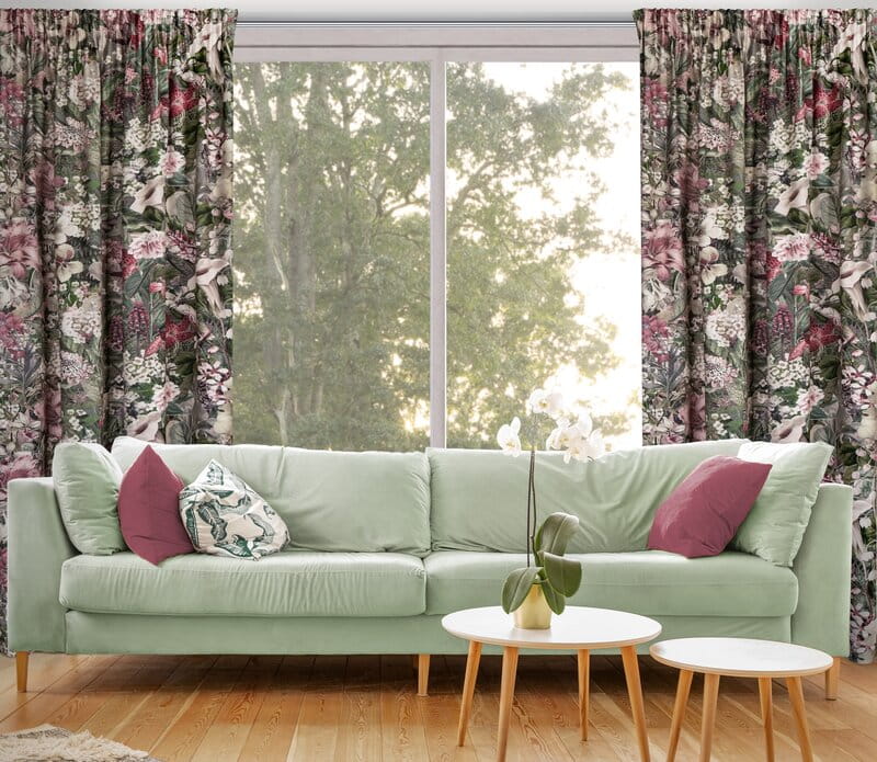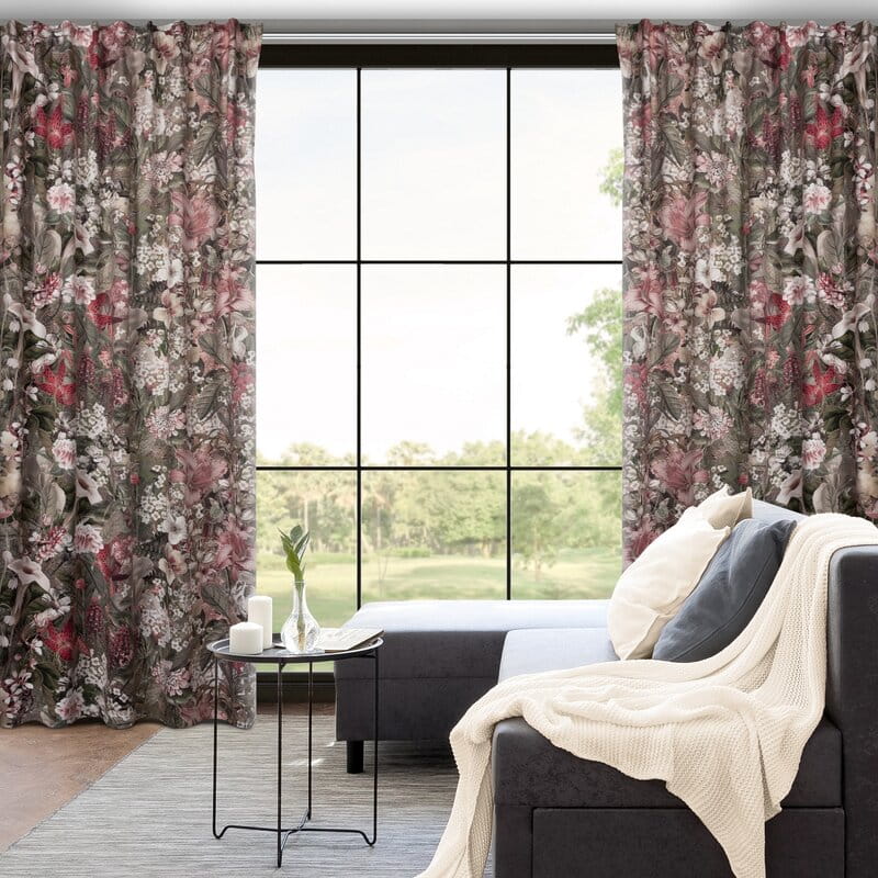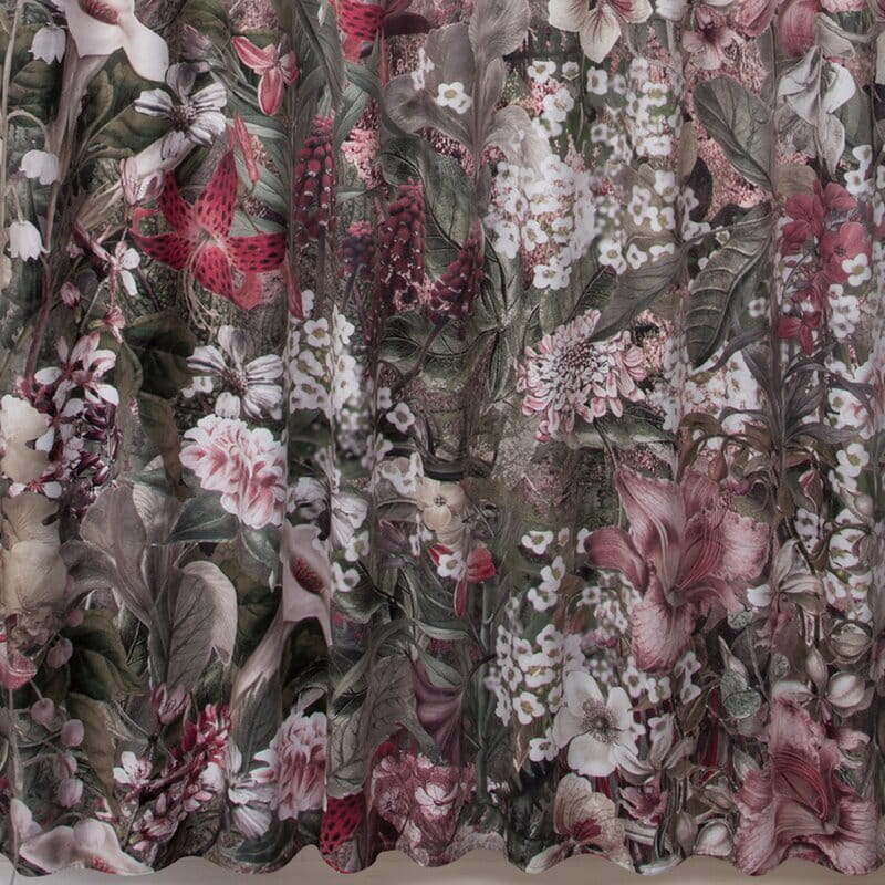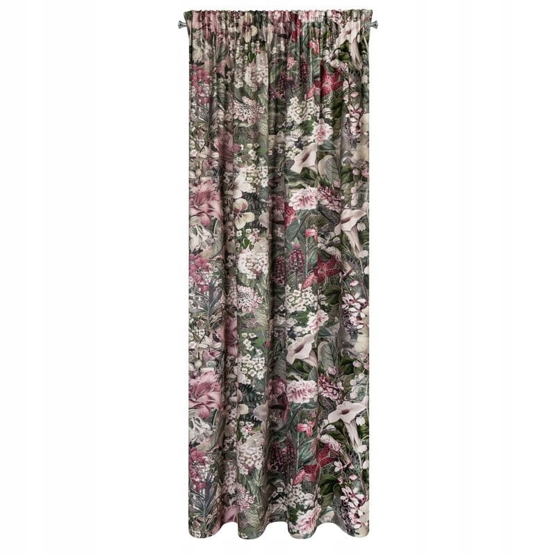 - Zasłona welwetowa na taśmie z ukrytymi szelkami z nadrukiem kwiatowym