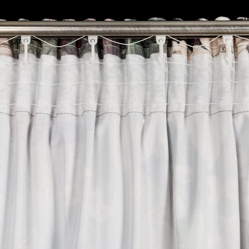 Taśma dekoracyjna wszyta w górnej części powoduje równomierne marszczenie tkaniny. Dzięki niej możemy ją powiesić w różnoraki sposób- na żabkach, haczykach oraz agrafkach.