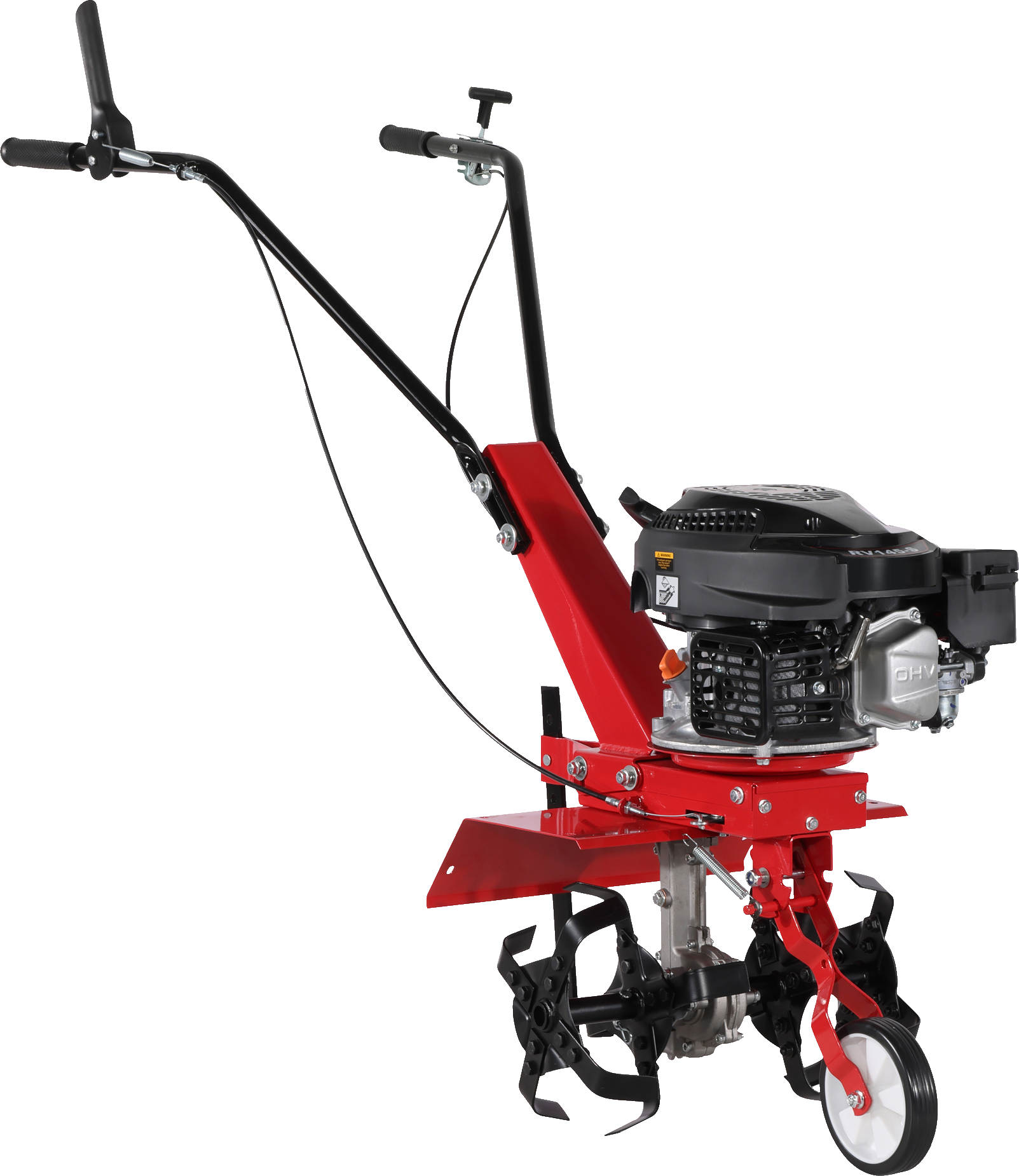Przednie koło glebogryzarki ułatwia poruszanie się po ogródku.