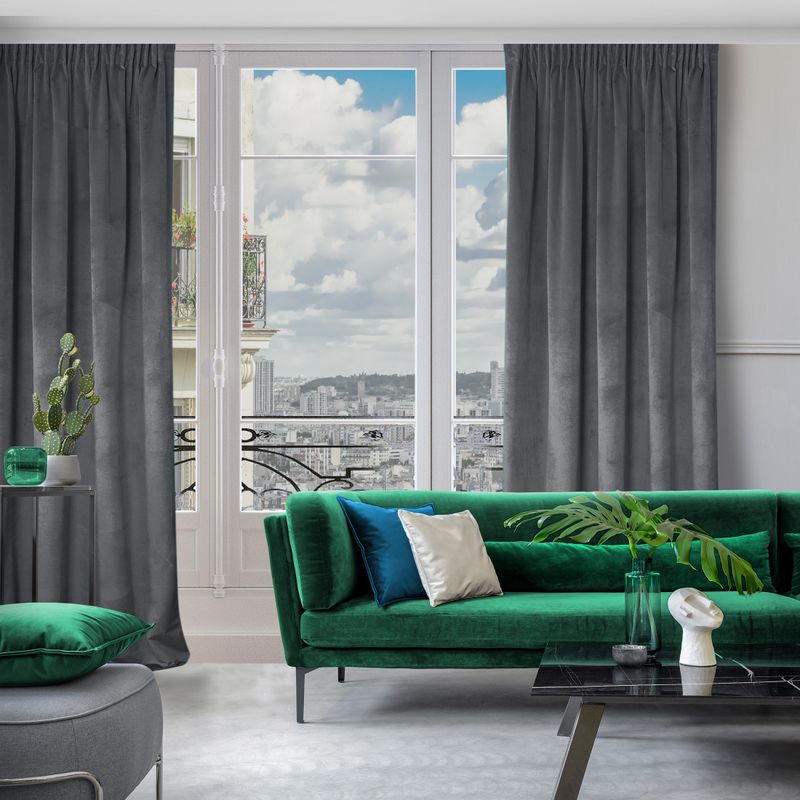 Gotowa zasłona welwetowa na taśmie 140x270 GRAFITOWA