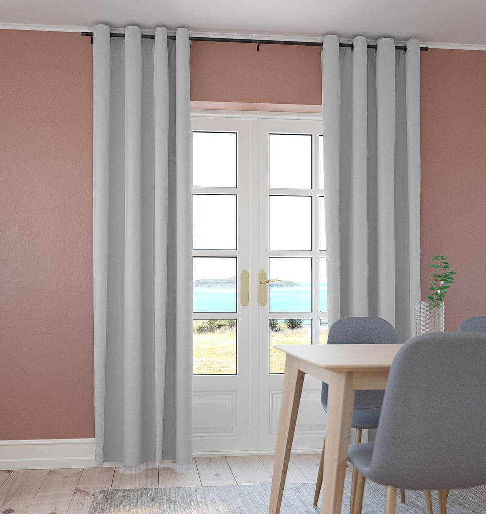 Jasnoszara gotowa zasłona na przelotkach 140 x 300 do salonu sypialni