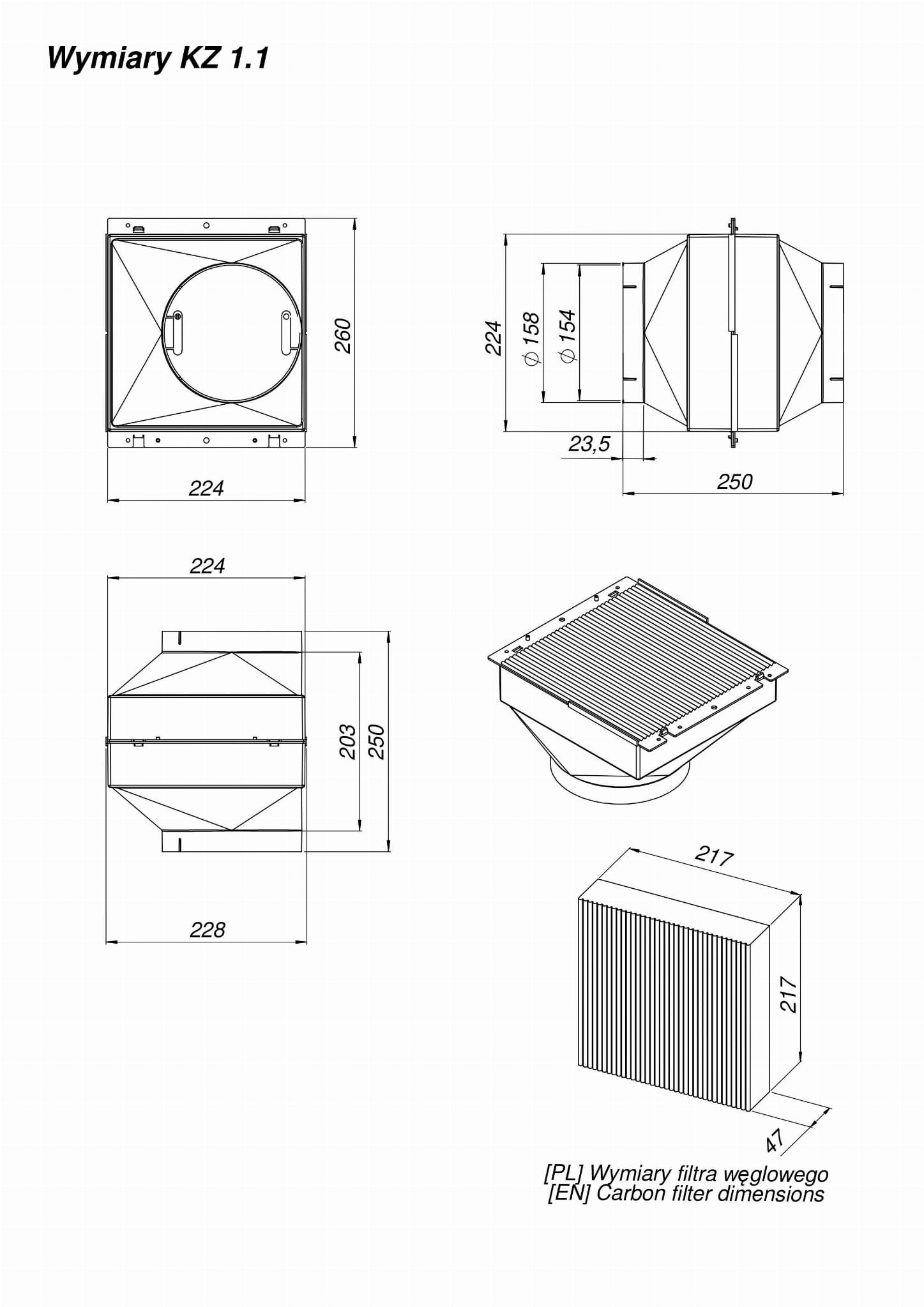 KOMORA ZAMKNIĘTA FILTRA WĘGLOWEGO KZ 1.1