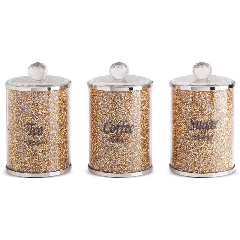 KOMPLET POJEMNIKÓW CUKIER KAWA HERBATA GLAMOUR