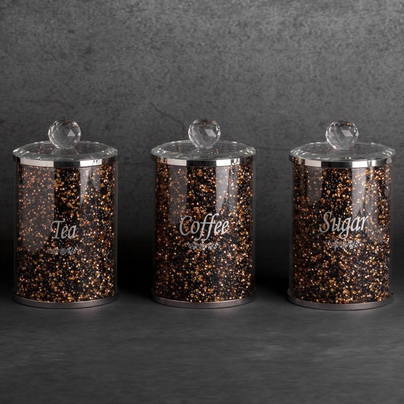 KOMPLET POJEMNIKÓW CUKIER KAWA HERBATA GLAMOUR