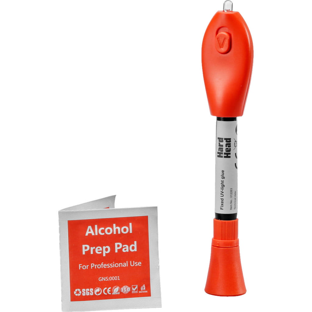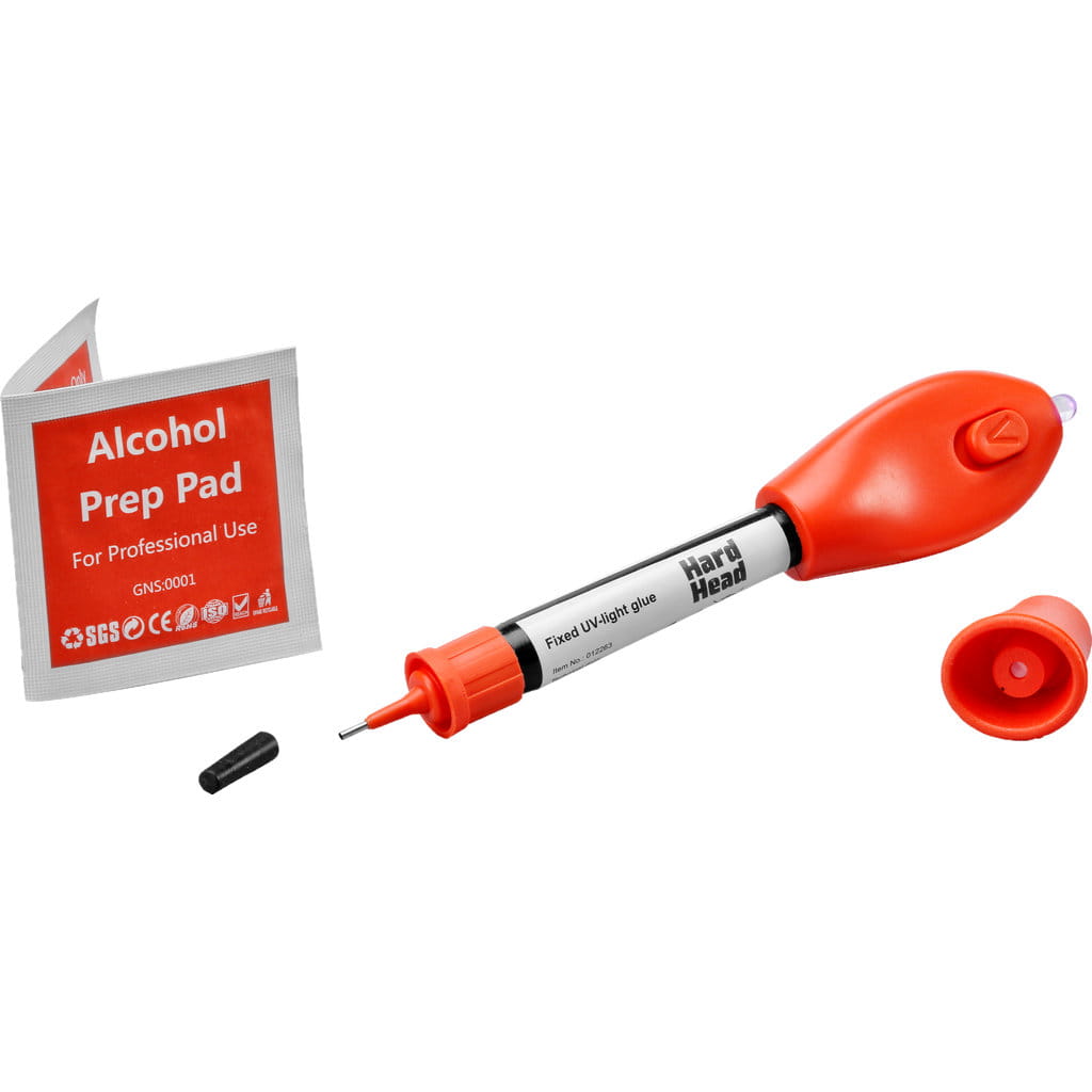 Nałóż klej na przedmiot, który chcesz skleić, obróć pisak i włącz światło UV. Klej twardnieje w ciągu zaledwie 5 sekund! Dioda UV jest zasilana dwiema bateriami CR2016 (w zestawie).