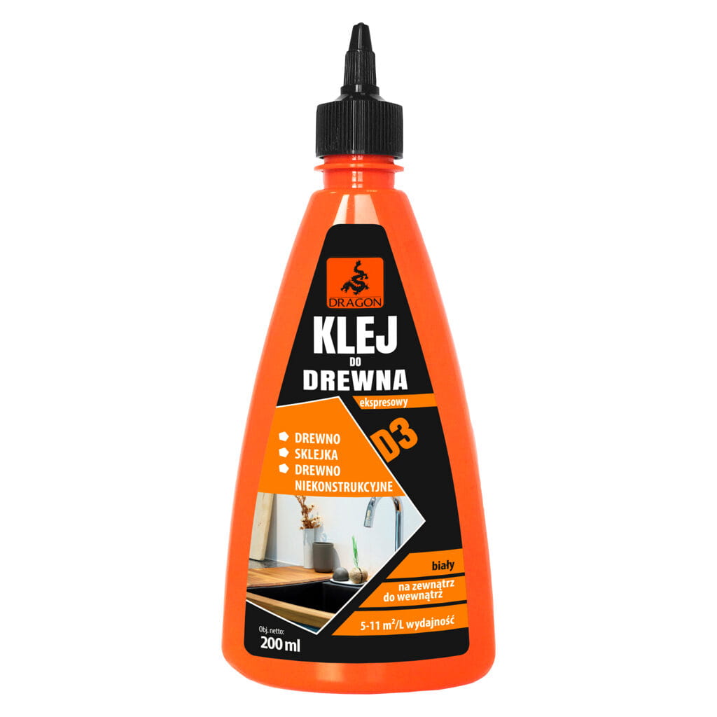 Klej marki Dragon to jednoskładnikowy klej do drewna do użytku tam, gdzie potrzebne są wodoodporne spoiny D3. Ten klej do drewna odznacza się czasem twardnienia wynoszącym około 24 godziny i nie zawiera żadnych organicznych rozpuszczalników. Klej jest biały, a utworzona spoina bezbarwna.
