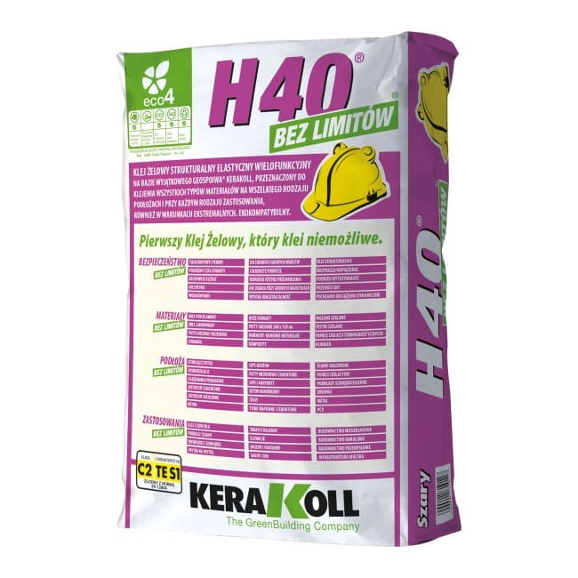 Ekokompatybilny klej do płytek H40 Bez Limitów szary to innowacja, która zastąpi Twoją standardową zaprawę. Żelowa konsystencja nie spływa i utrzymuje kształt nawet przy grubych warstwach. Za pomocą tej zaprawy przymocujesz płytki do każdego rodzaju stałego podłoża. Klej H40 Bez Limitów wykorzystuje unikalne geospoiwo Kerakoll – sprawdź też inne produkty marki z tym składnikiem.