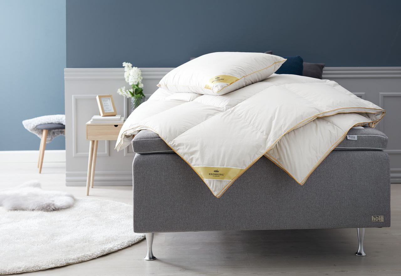 Luksusowa antyalergiczna kołdra o konstrukcji kasetowej. Wsad w 90% z puchu gęsi europejskiej i 10% pierza gęsiego, łączna waga 1100 g. Miękkie poszycie w 100% z bawełnianego batystu, które zostało poddane bezpiecznej obróbce zapobiegającej namnażaniu się roztoczy. Właściwości antyalergiczne utrzymują się nawet po wielu praniach. Konstrukcja kasetowa chroni przed powstawaniem zimnych stref. Puszystość 725. Pranie w 60°C. Z torbą do przechowywania. 200x220 cm