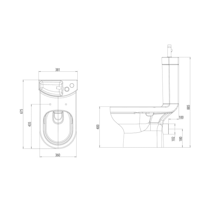 - Typ podłączenia spłuczki: boczne