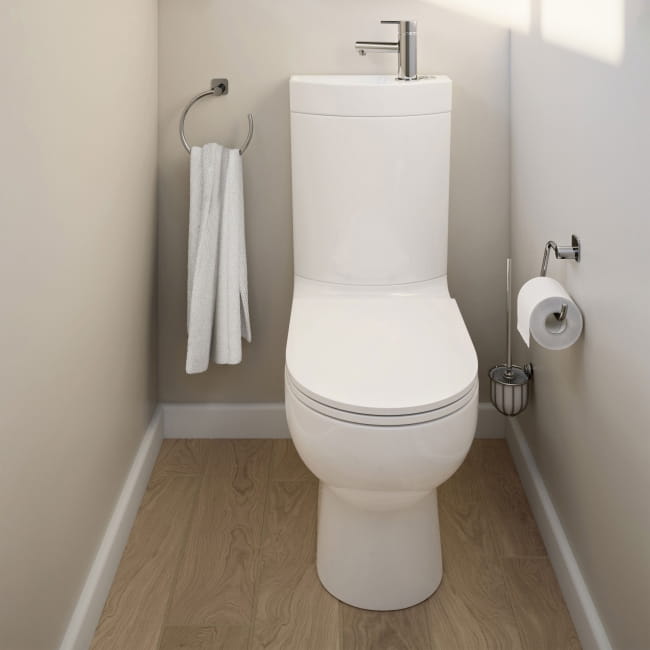 Kompakt WC GoodHome Cavally bezkołnierzowy 3/6 l z umywalką i deską wolnoopadającą