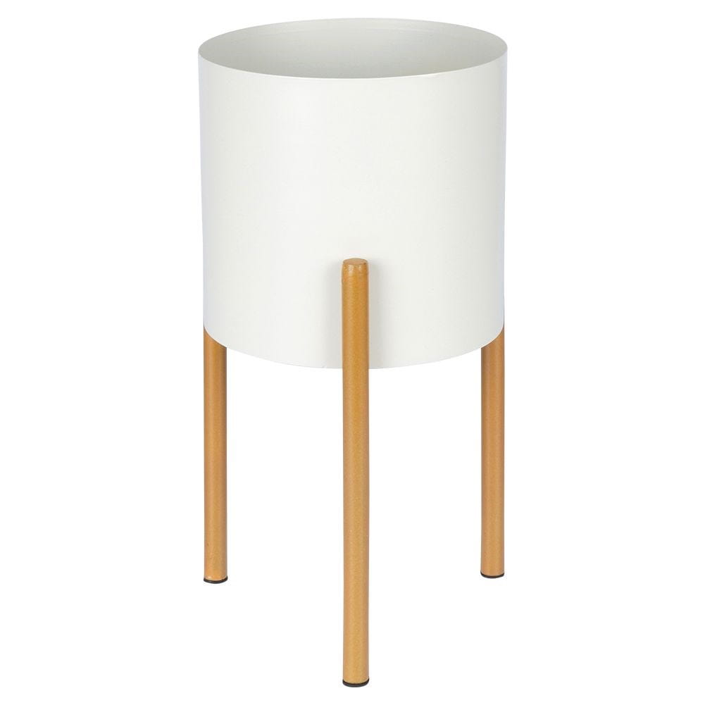 Oryginalna, metalowa doniczka na stojaku. Stylowa i elegancka w modnych kolorach kremu i złota. Sprawdzi się dla roślin żywych oraz sztucznych.✅Dane techniczne: