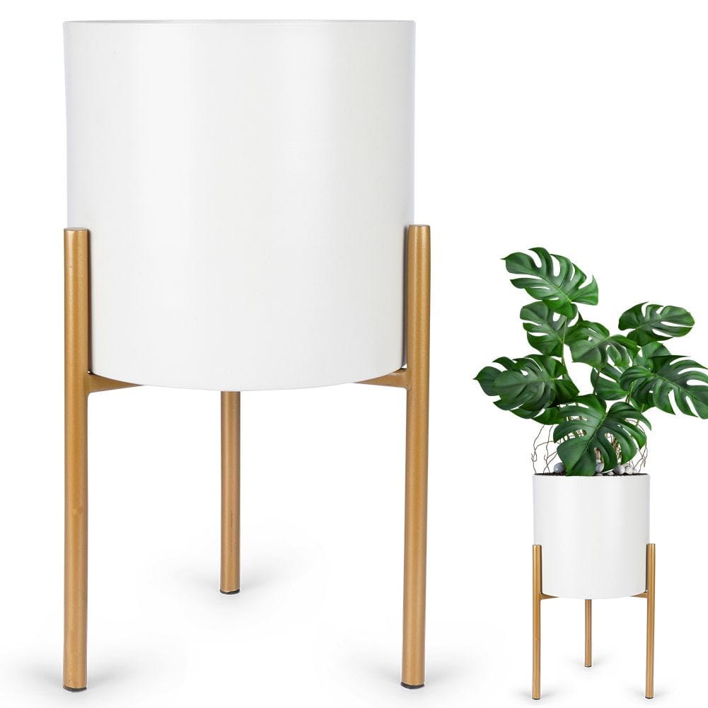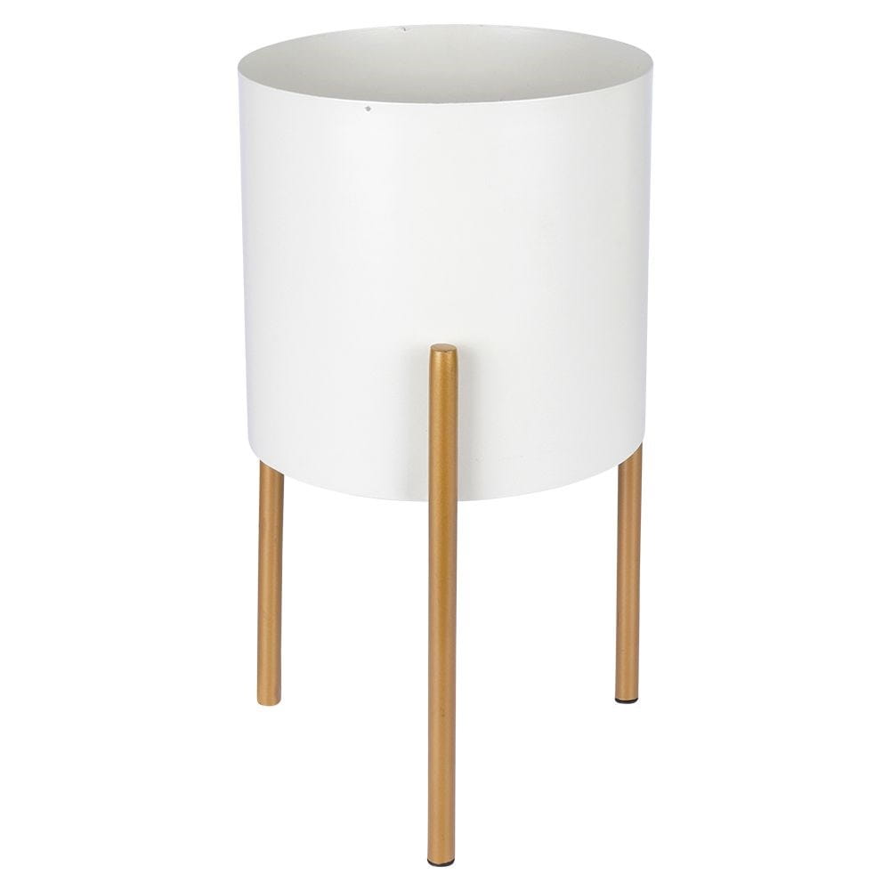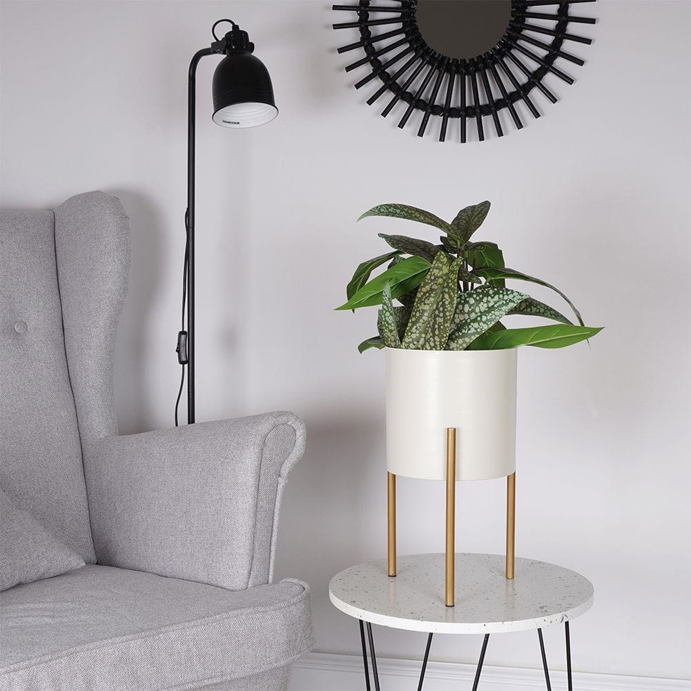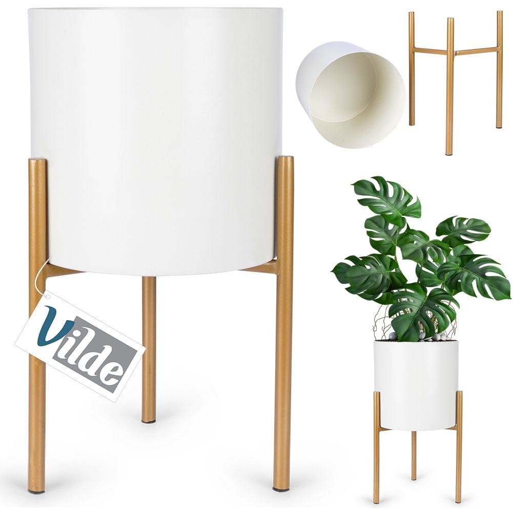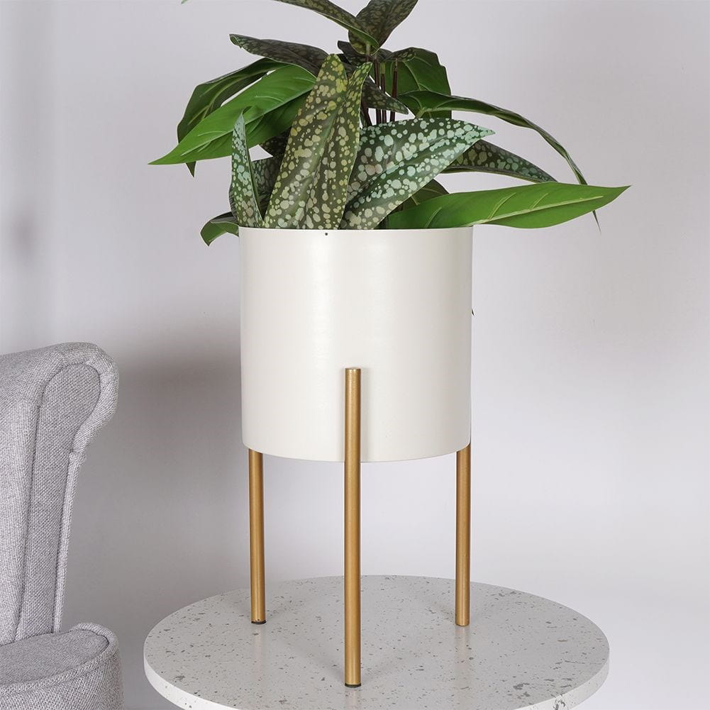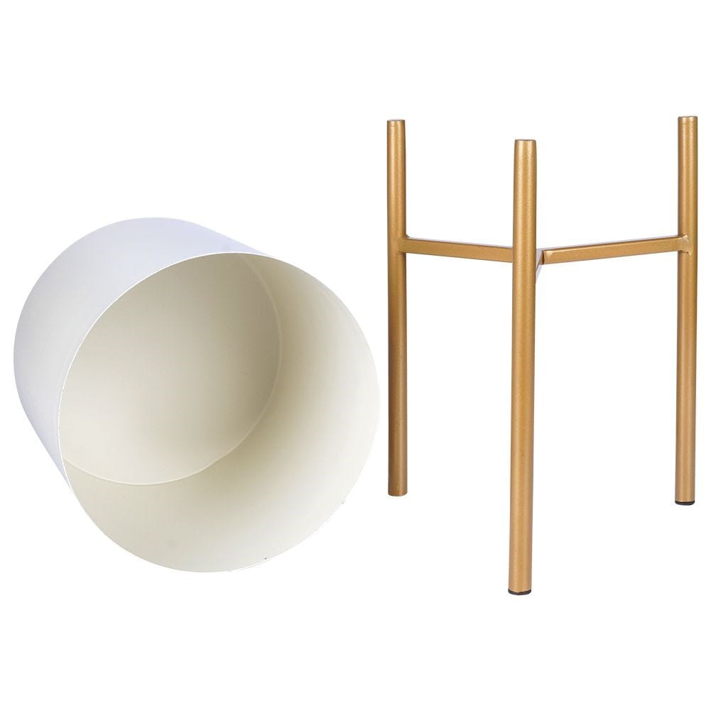 Oryginalna, metalowa doniczka na stojaku. Stylowa i elegancka w modnych kolorach kremu i złota. Sprawdzi się dla roślin żywych oraz sztucznych.✅Dane techniczne: