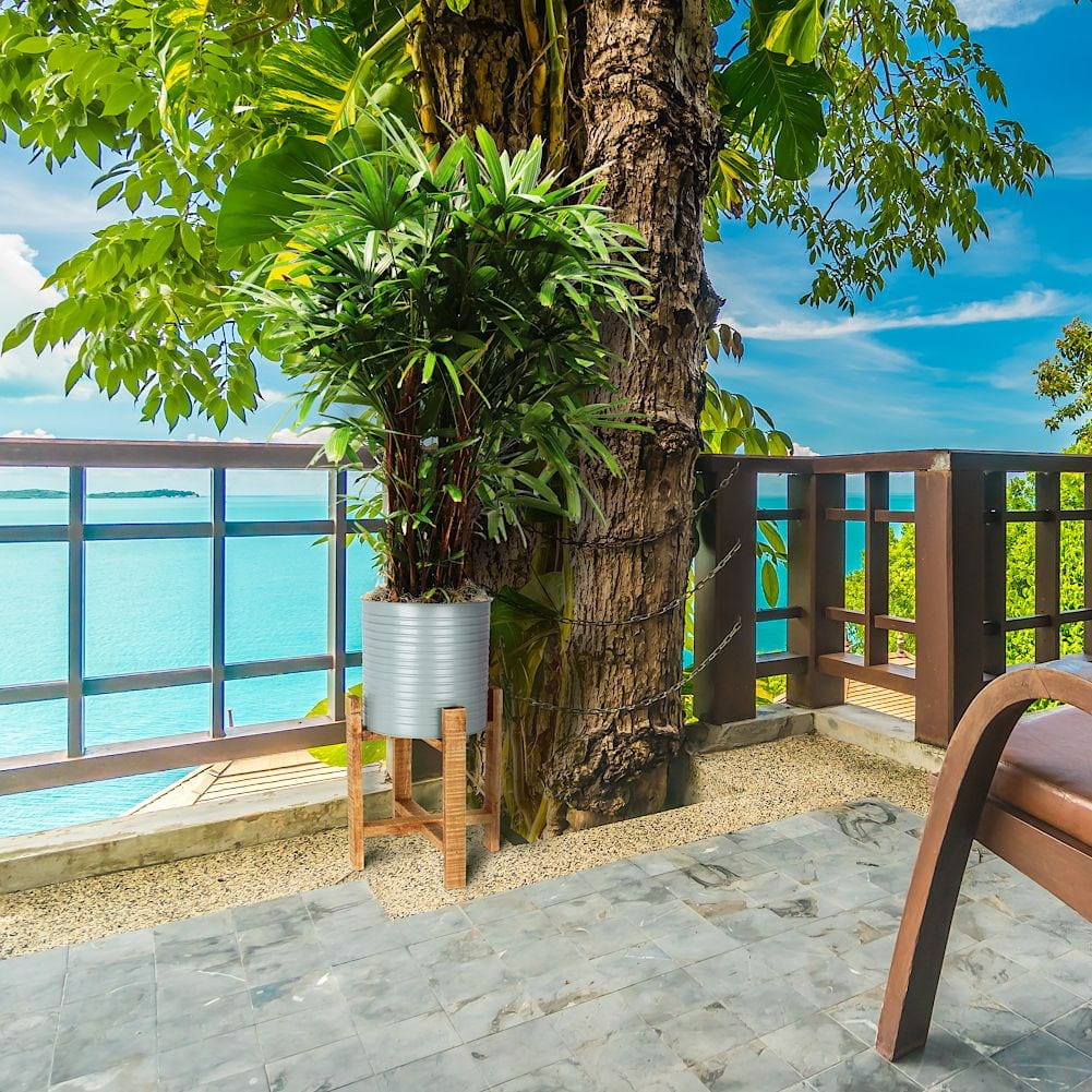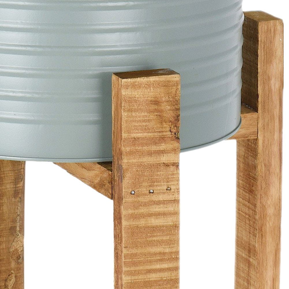 Kwietnik w formie metalowej donicy na drewnianym stojaku. Świetnie będzie się prezentować w pomieszczeniach nowoczesnych oraz industrialnych.✅Dane techniczne: