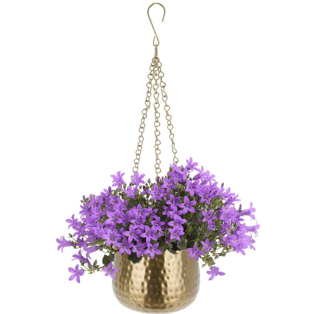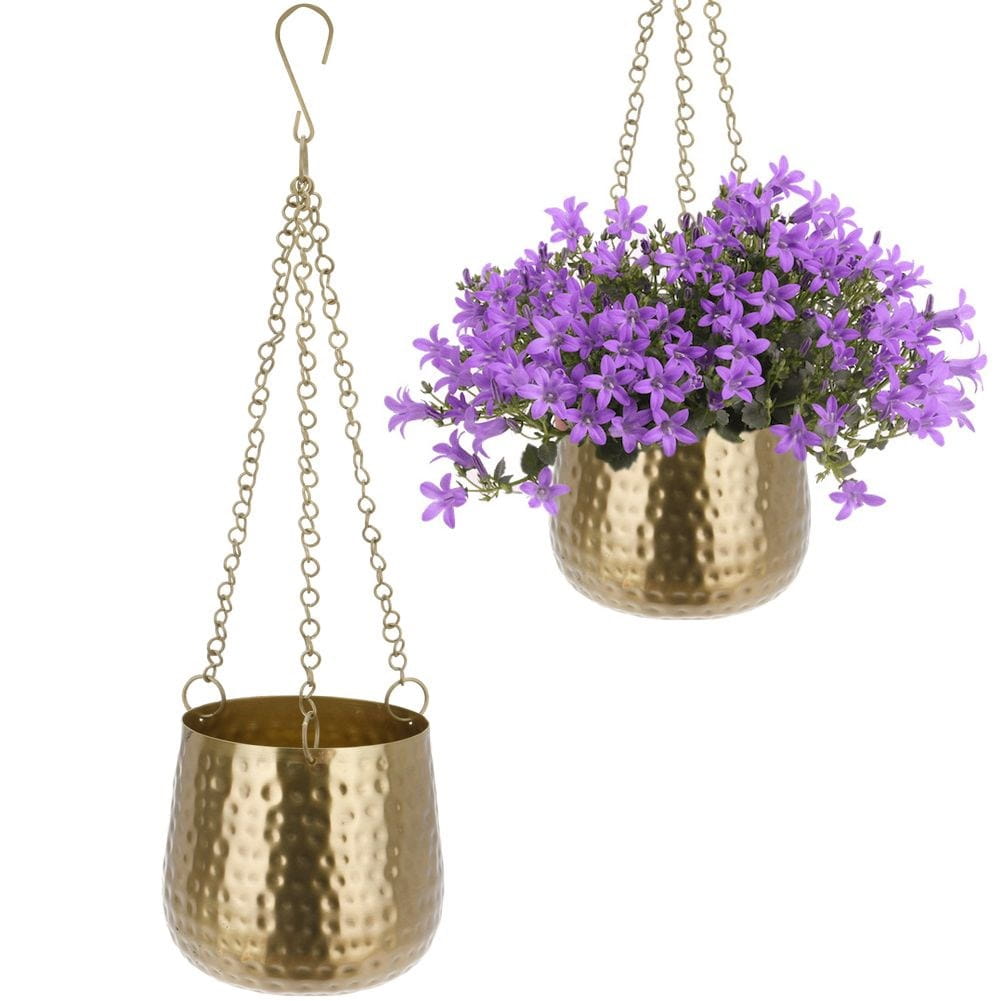 Wyjątkowy, wiszący kwietnik na doniczkę z rośliną. Wykonany z metalu w kolorze złotym. Sprawdzi się dla roślin żywych oraz sztucznych.✅Dane techniczne: