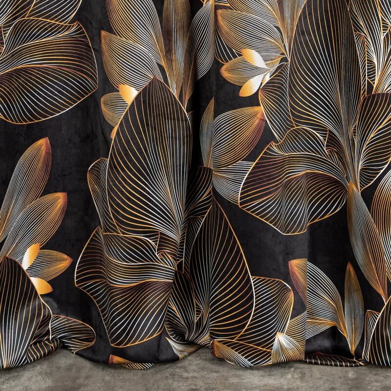 LARISA CZARNA ZASŁONA Z WELWETU W LIŚCIE 140x270cm