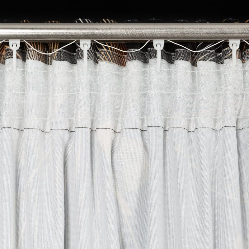 Taśma dekoracyjna wszyta w górnej części powoduje równomierne marszczenie tkaniny. Dzięki niej możemy ją powiesić w różnoraki sposób- na żabkach, haczykach oraz agrafkach.