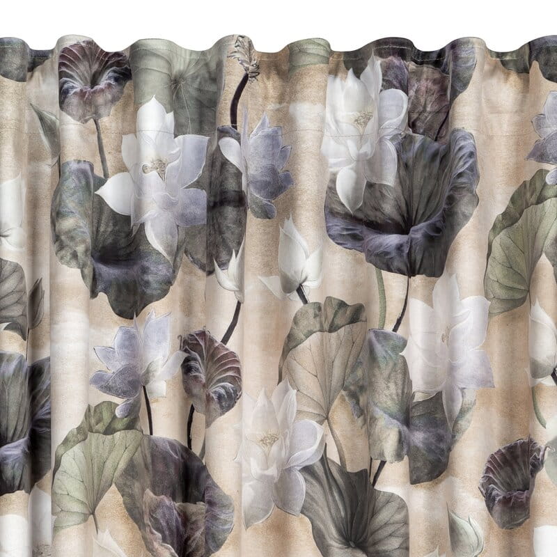 LOTOS BEŻOWA ZASŁONA W KWIATY LOTOSU 140x270 cm